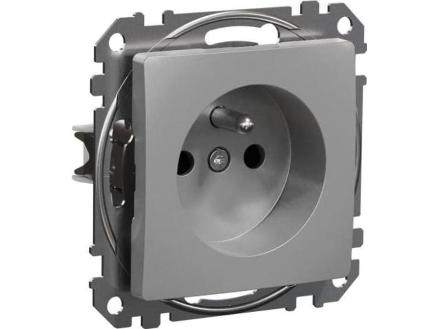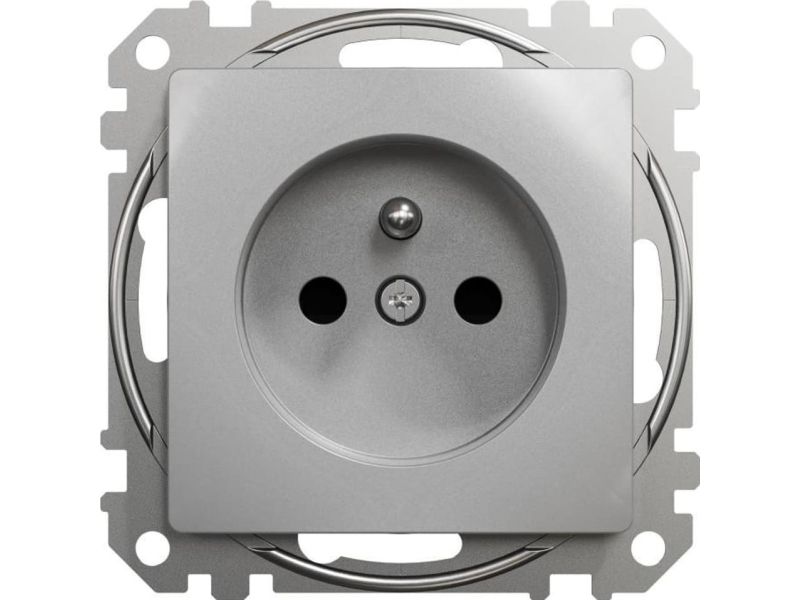 Schneider Electric, Sedna Design and Elements, Netzsteckdose 2P+PE mit Strompfadabdeckung, Aluminium silber, SDD113011