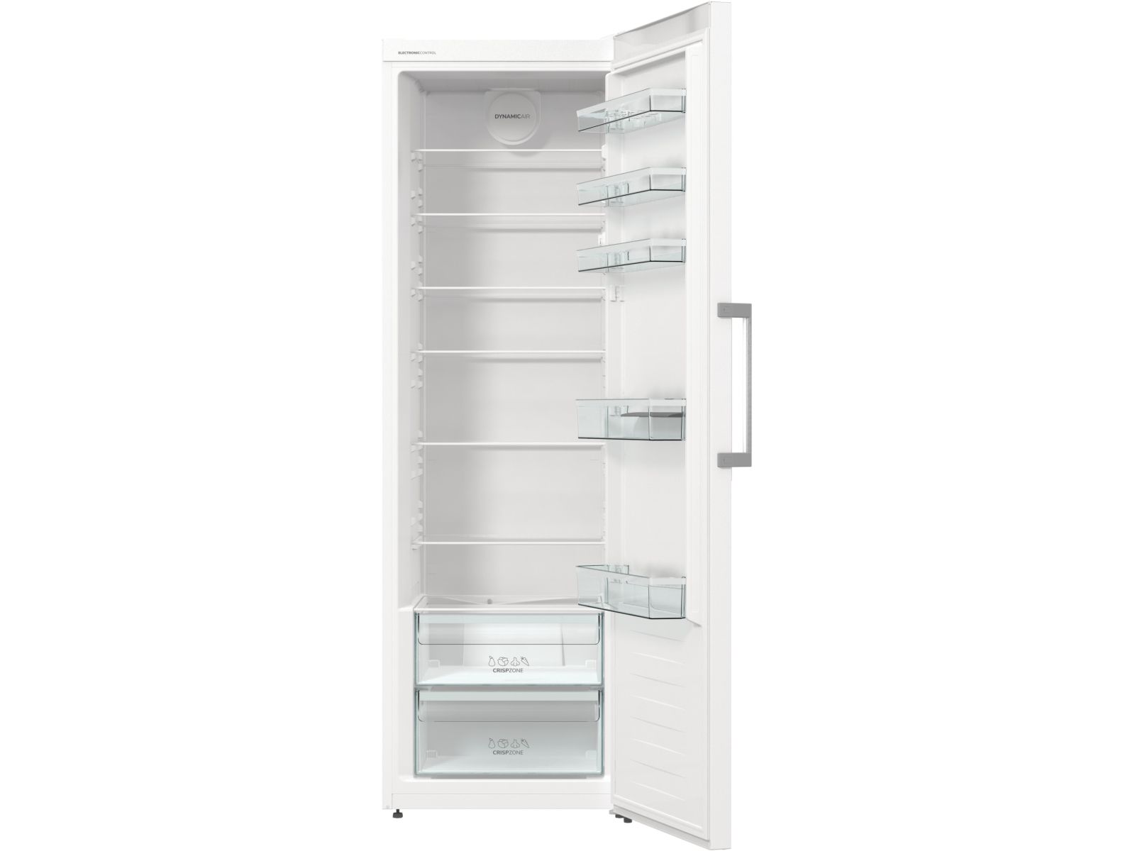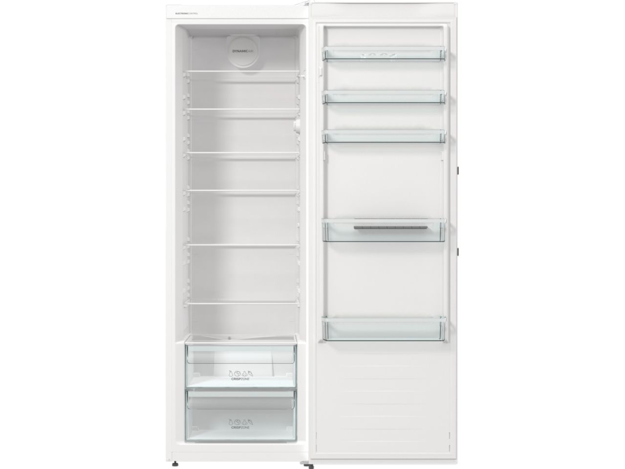 MultiAdjust shelves These sturdy glass shelves can be very easily adjusted in position, inserted into the fridge or taken out, thereby allowing you complete freedom to adjust the fridge interior according to your specific needs. The tempered glass shelves are highly durable and will securely carry even larger amounts of food.Gorenje Kylskåp R619EEW5 BK070B. Fridge net capacity: 398 L, Climate class: SN-N, Noise level: 38 dB. Fridge number of shelves/baskets: 7, Number of vegetable drawers: 2. Lamp type: LED. Door hinge: Right. Annual energy consumption: 123 kWh, Energy efficiency class: E. Weight: 60 kg. Product colour: White