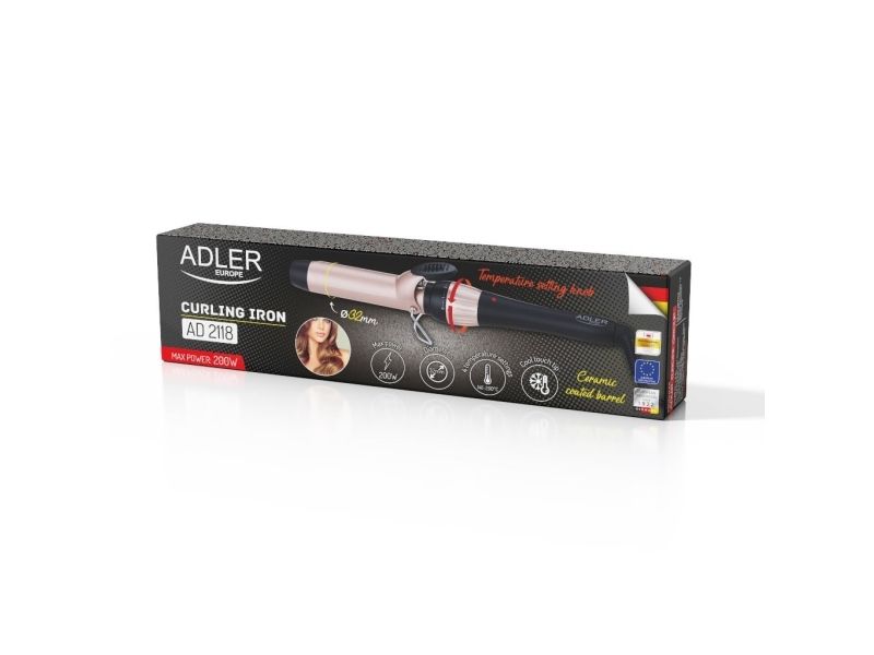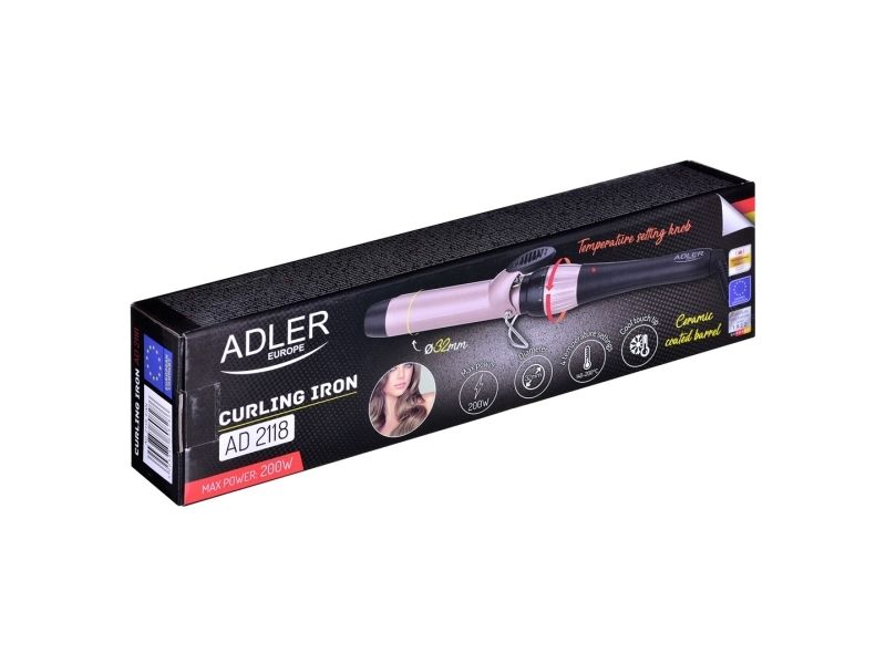 Adler Lockenstab AD 2118 Keramik-Heizsystem, 32 mm, max. 200 °C, 56 W, schwarz/pink