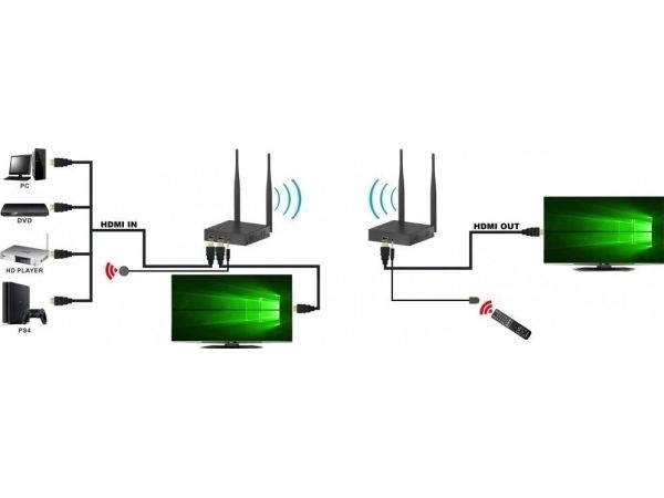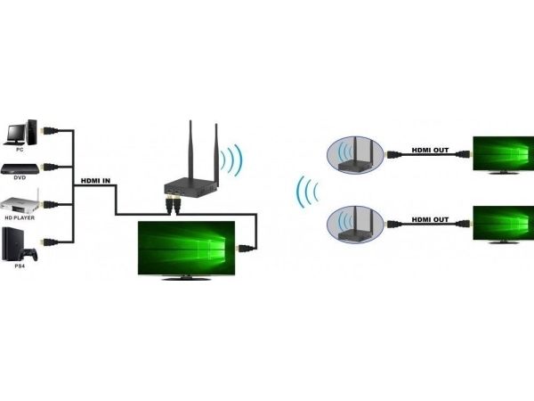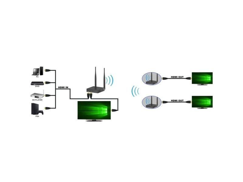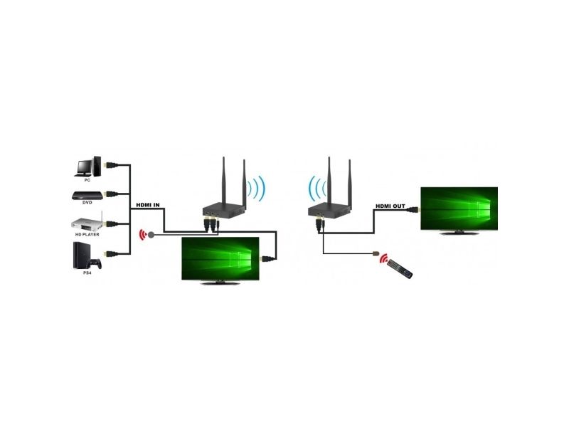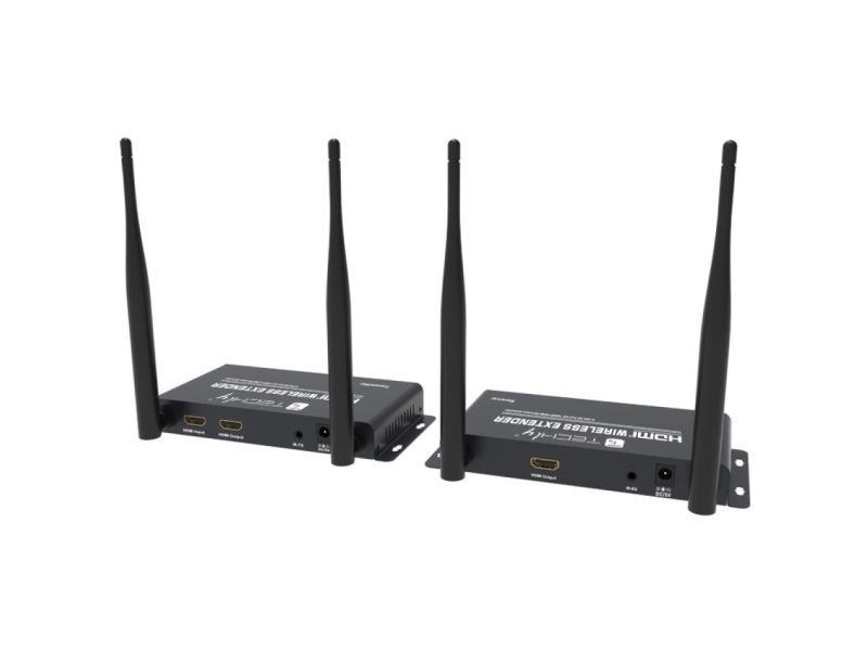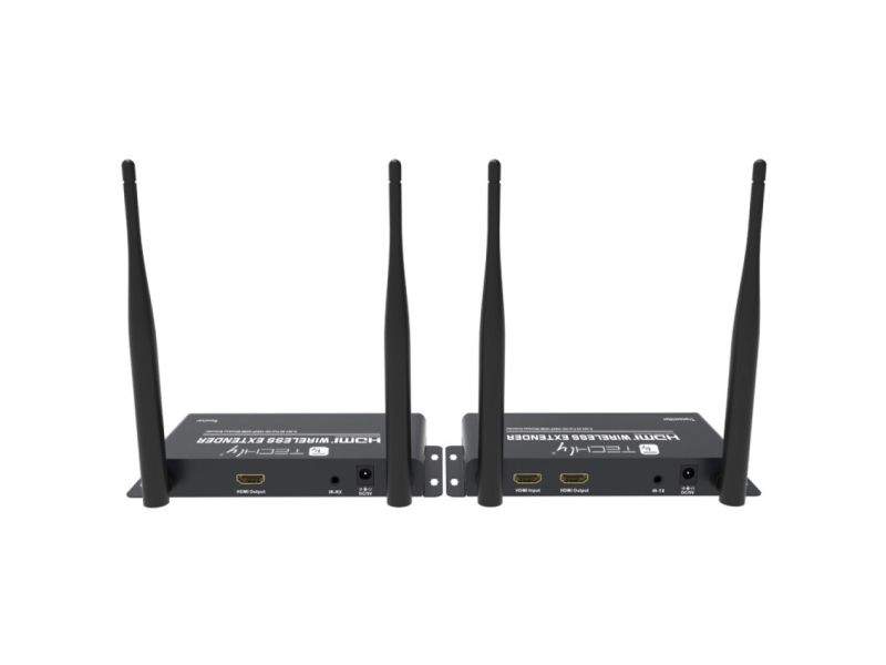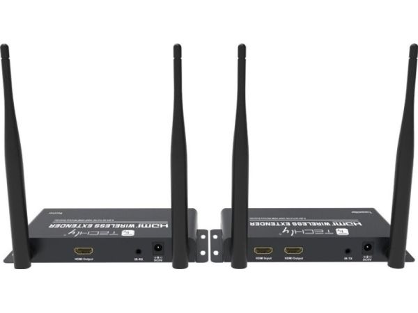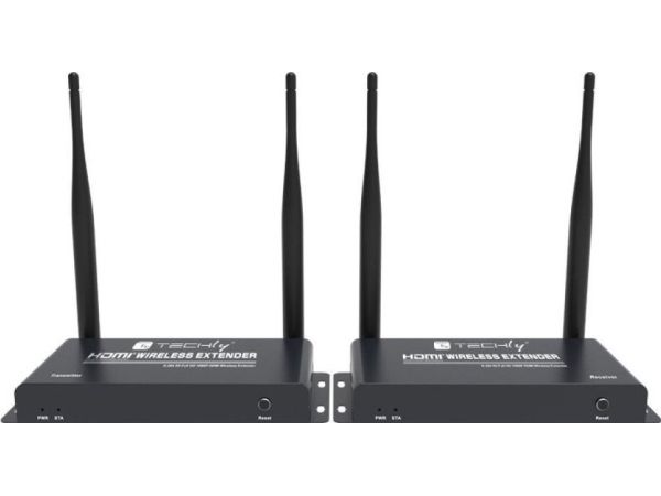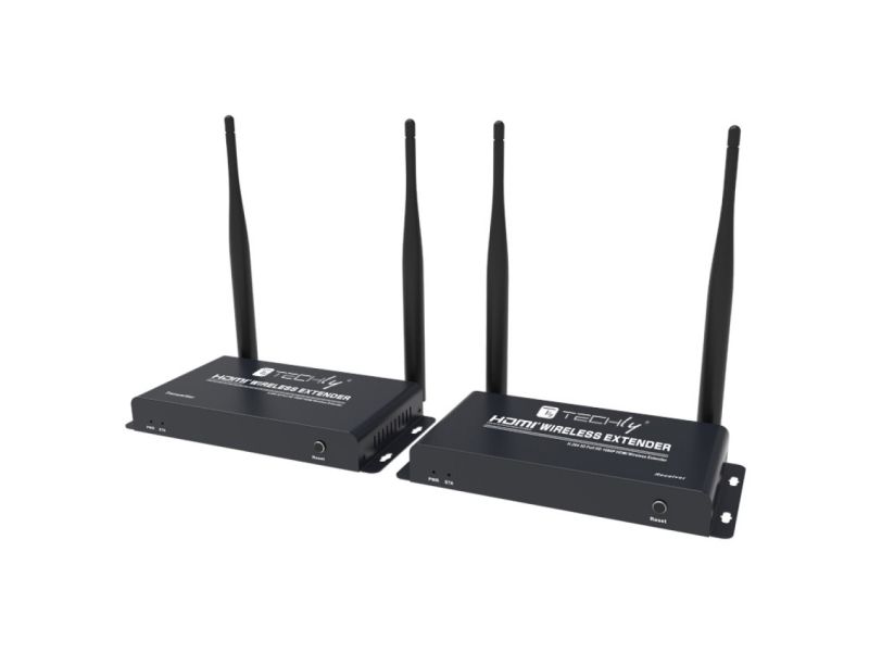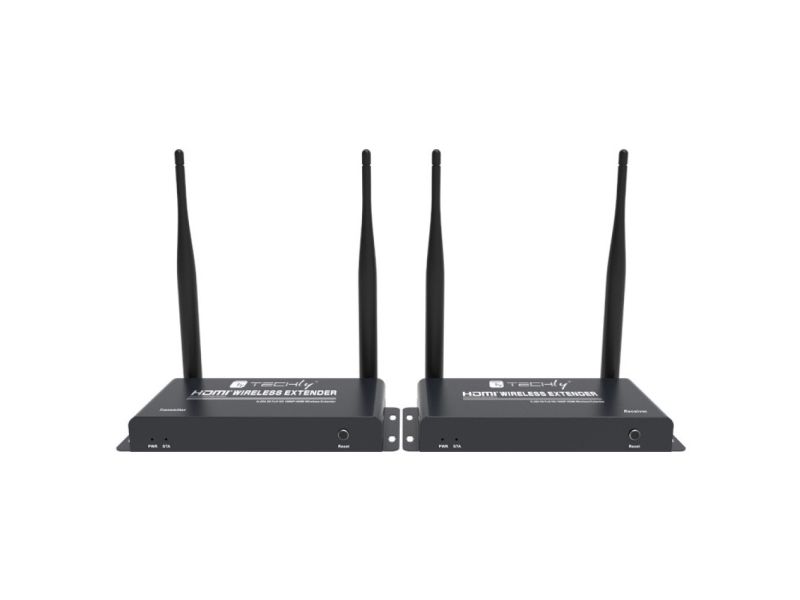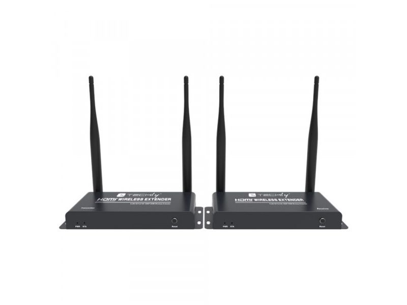 This HDMI extender consists of a transmitter and a receiver unit and allows you to extend the HDMI signal without the use of cables from the source to the screen up to 200 meters. It works by exploiting the operating frequency of 5GHz so it is particularly resistant to interference. It supports one-to-one and one-to-two connection. It's the ideal solution for conferences, meetings, training and educational environments, entertainment and more.Techly Wireless Kit HDMI Extender up to 200m. Type: AV transmitter & receiver, Maximum resolution: 1920 x 1080 pixels, Maximum transfer distance: 200 m. Connectivity technology: Wireless. Power source type: DC. Width: 170 mm, Depth: 82 mm, Height: 22 mm. Cables included: IR