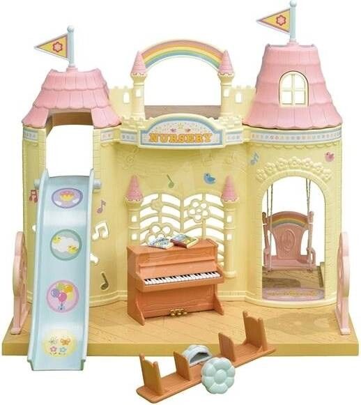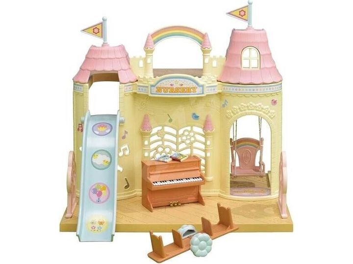 Baby Castle Nursery comes with plenty of playground equipment, such a piano, swing, a slide that can be set alone or used from the second floor and a table that turns into a seesaw. Create different layouts by changing the direction of the building to create a wider room, and a front garden in which various playground equipment can be placed.