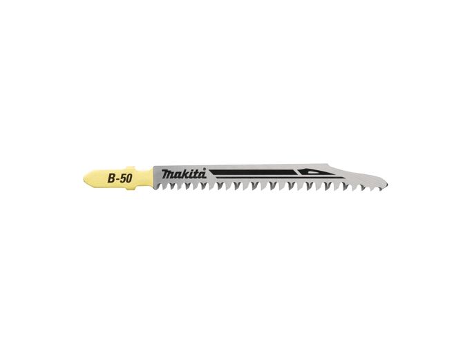 Makita jig saw blade made with High Speed Steel (HSS) for faster cutting. High Speed Steel for longer life than high carbon steel blades. For use with jig saws that accept a T-shank blade.