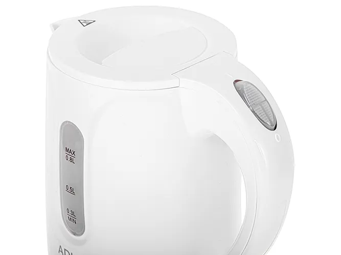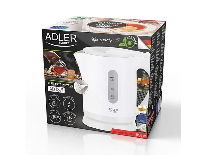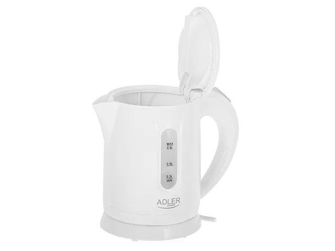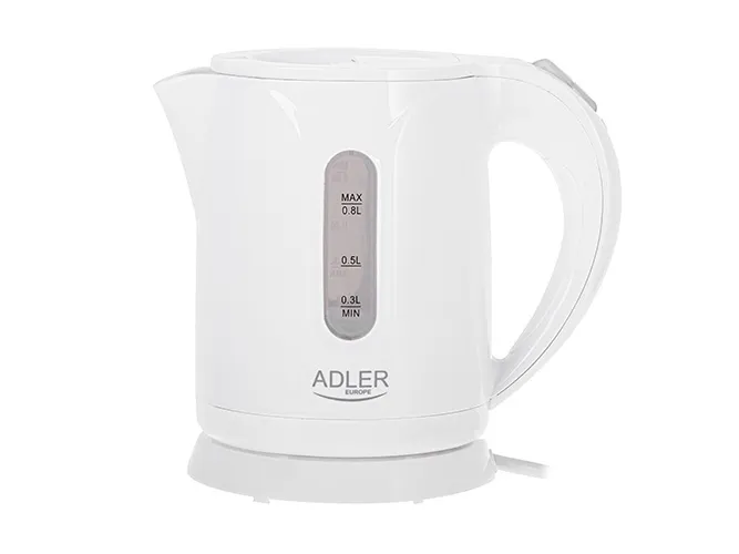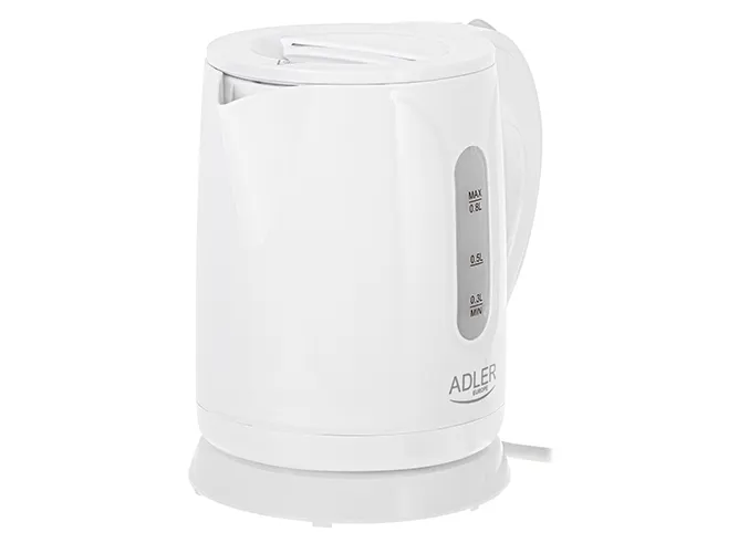 Adler | Wasserkocher | AD 1371w | Elektrisch | 850 W | 0,8 L | Edelstahl/Polypropylen | 360°-Drehfuß | Weiß