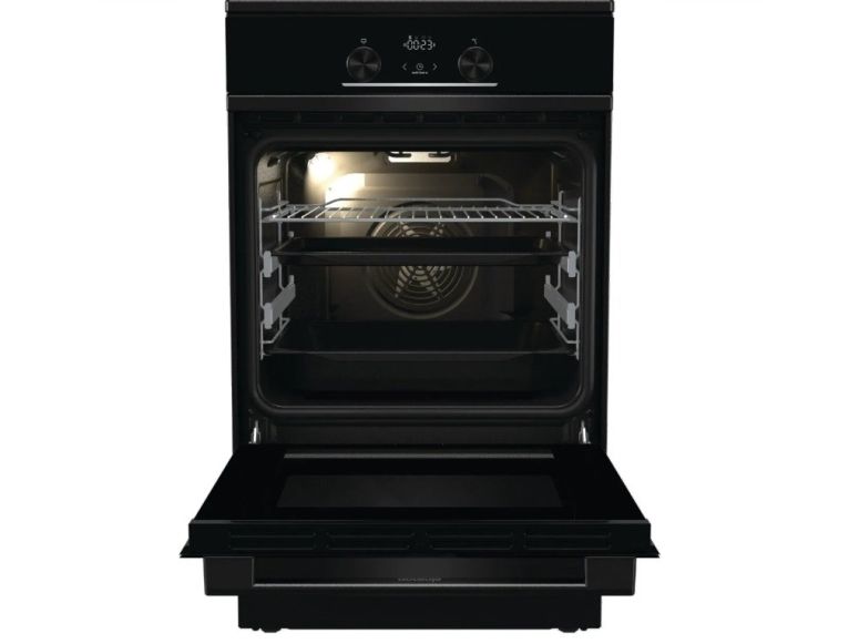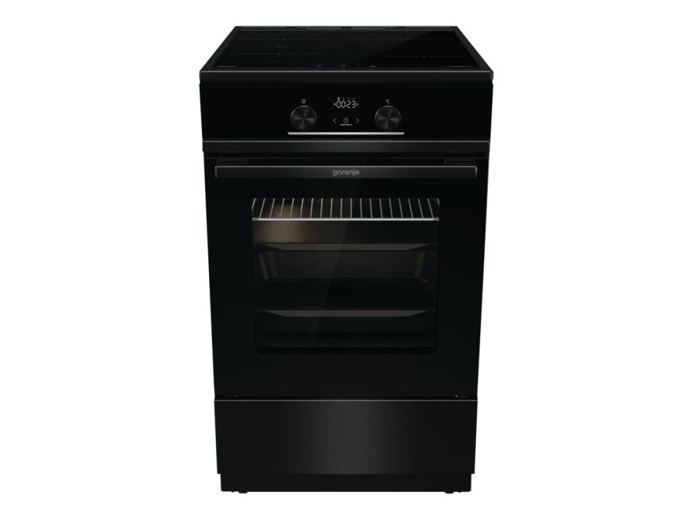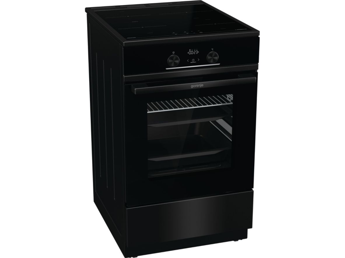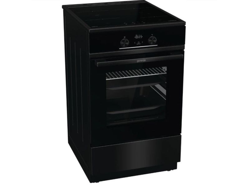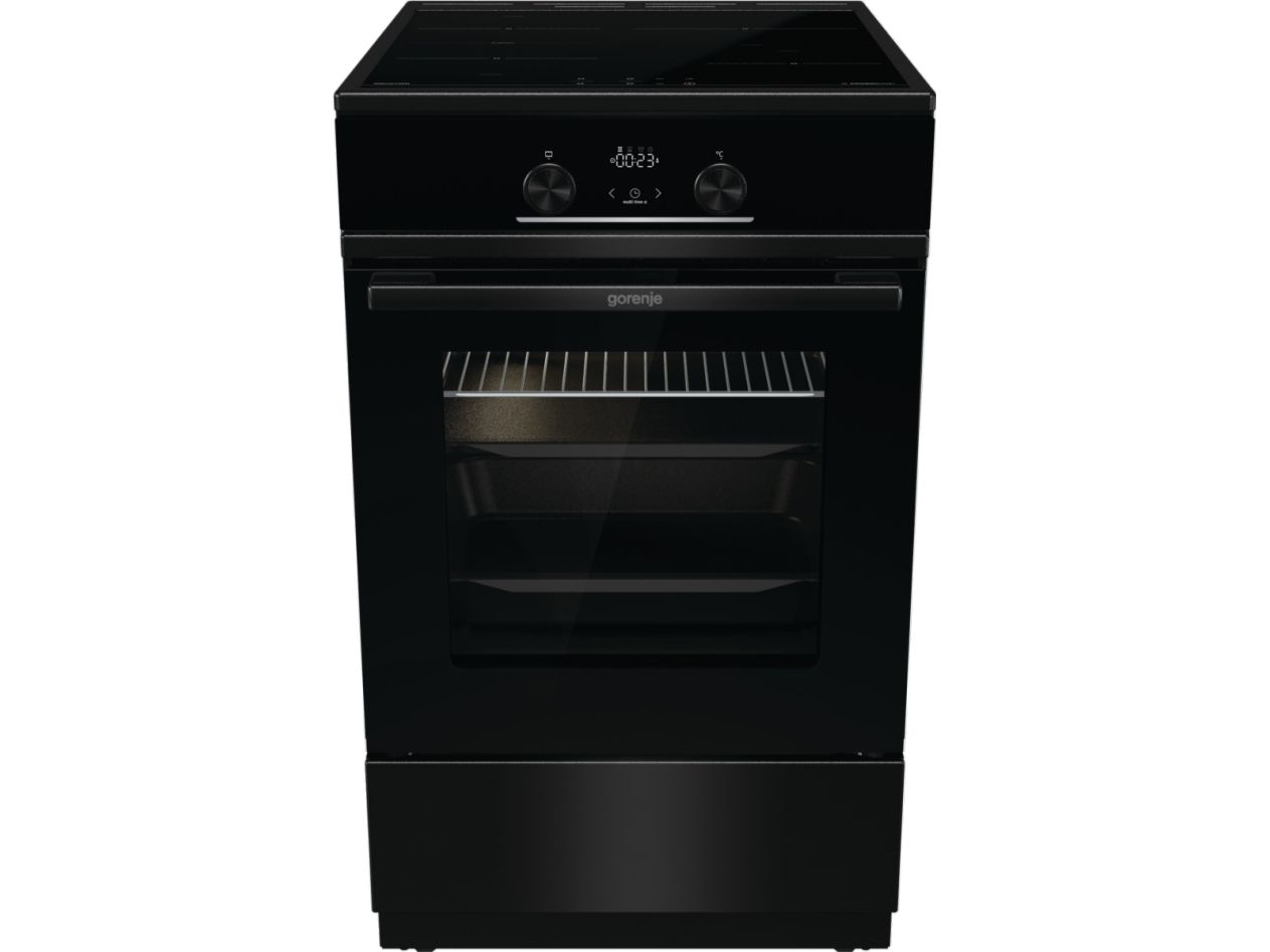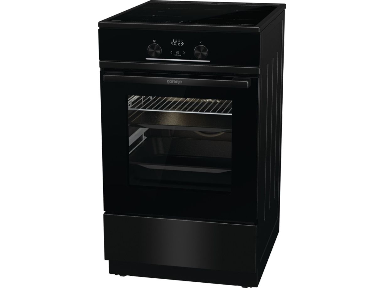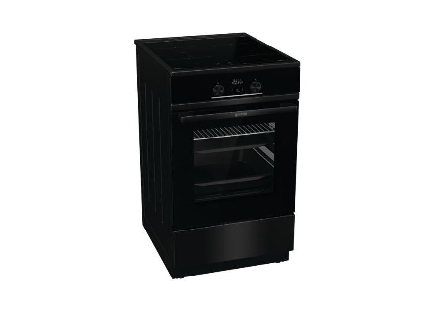 Gorenje GEIT5C60BPG. Product type: Freestanding cooker, Product colour: Black, Control type: Rotary, Touch. Hob type: Ceramic hob, Number of cooking zones: 4 zone(s), Number of electric cooking zones: 4 zone(s). Oven size: Medium, Oven power source: Electric, Oven net capacity: 70 L. Energy consumption (conventional): 0.98 kWh, Energy consumption (forced convection): 0.8 kWh, Connected load (electric): 10500 W. Width: 500 mm, Depth: 594 mm, Height: 850 mm