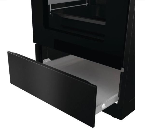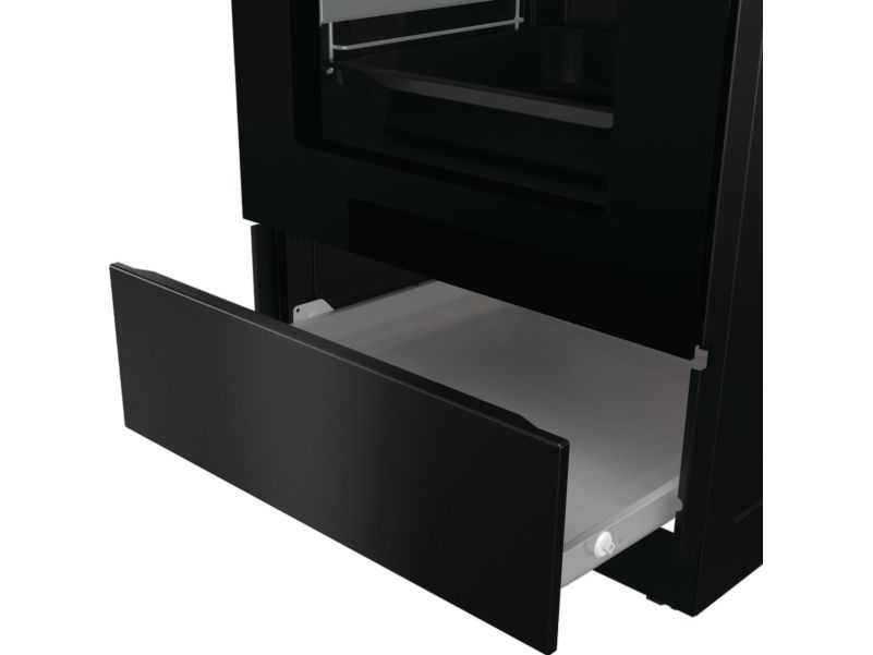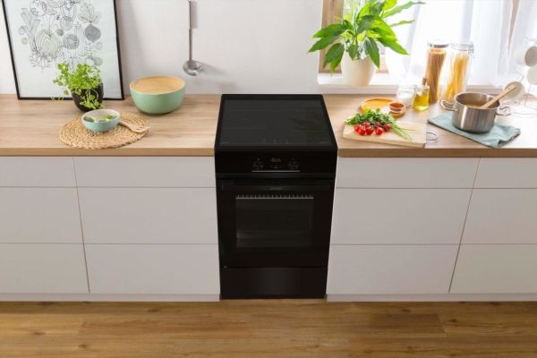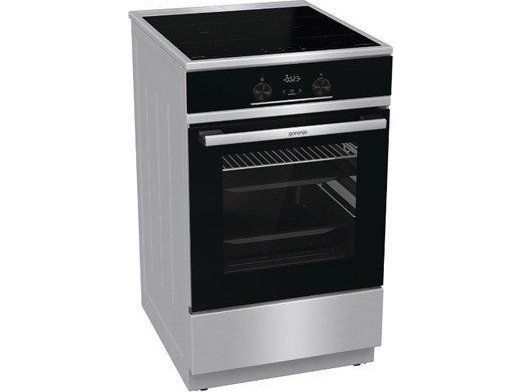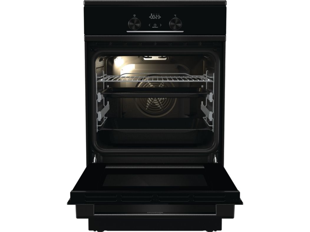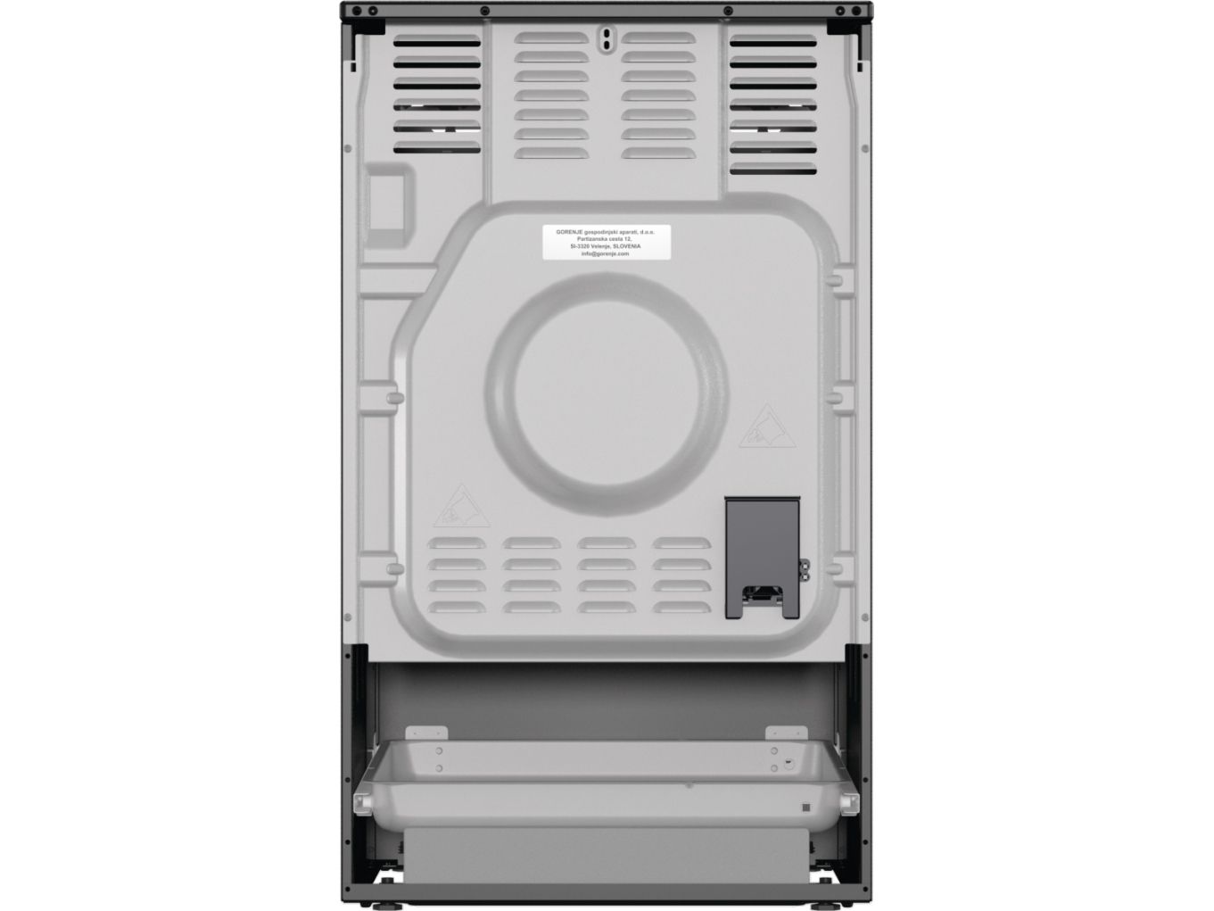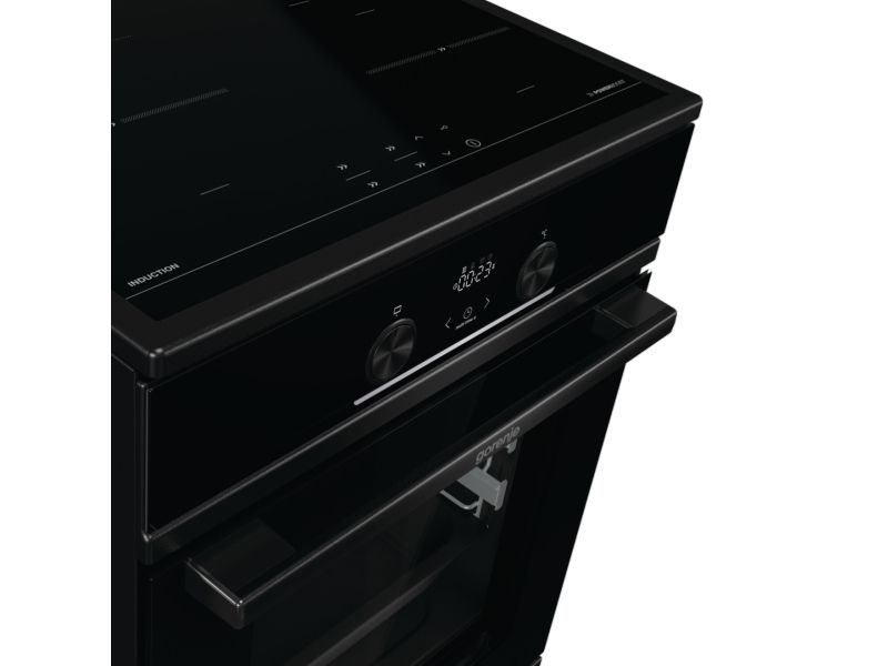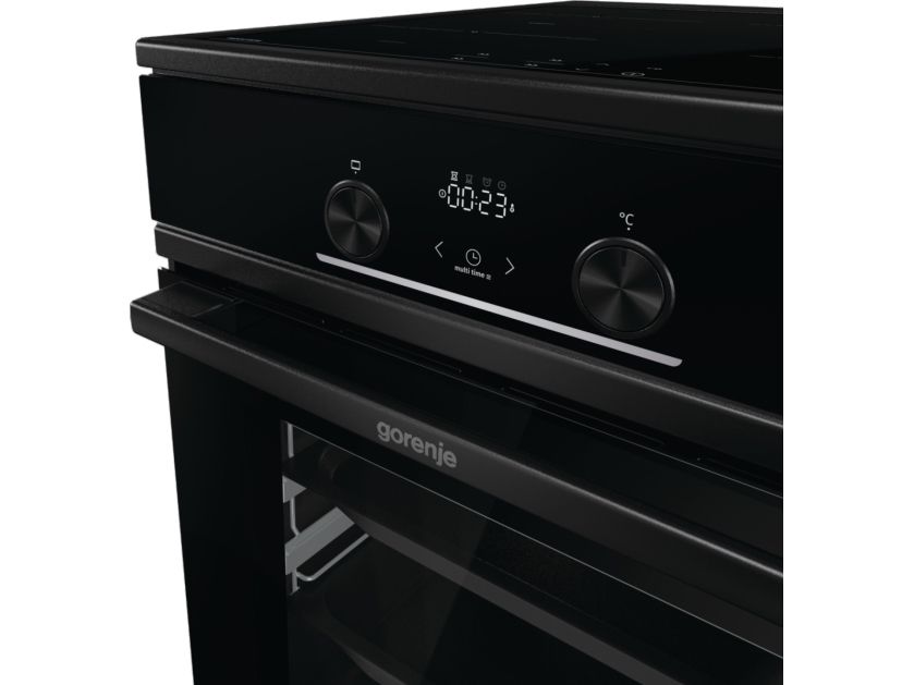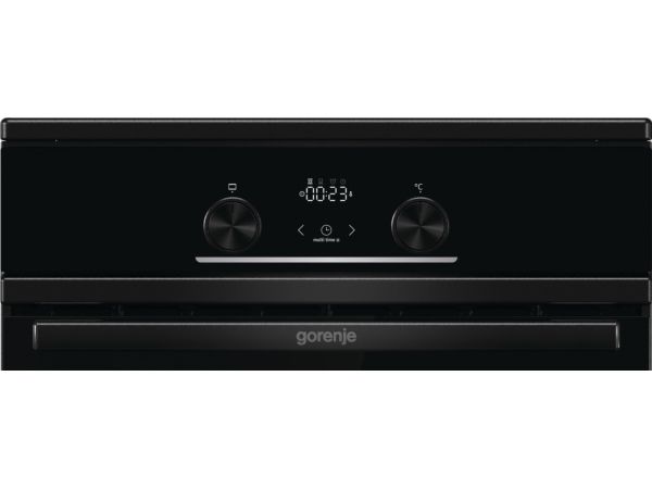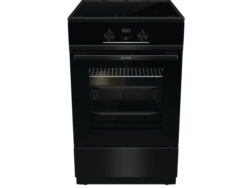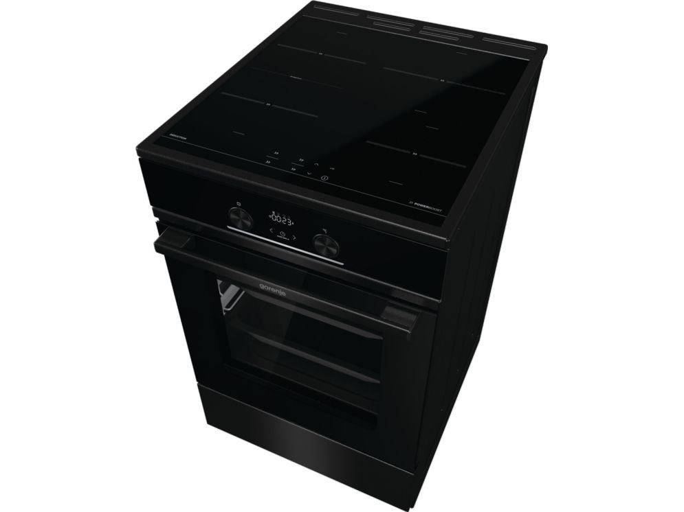 Gorenje GEIT5C60BPG. Product type: Freestanding cooker, Product colour: Black, Control type: Rotary, Touch. Hob type: Ceramic hob, Number of cooking zones: 4 zone(s), Number of electric cooking zones: 4 zone(s). Oven size: Medium, Oven power source: Electric, Oven net capacity: 70 L. Energy consumption (conventional): 0.98 kWh, Energy consumption (forced convection): 0.8 kWh, Connected load (electric): 10500 W. Width: 500 mm, Depth: 594 mm, Height: 850 mm