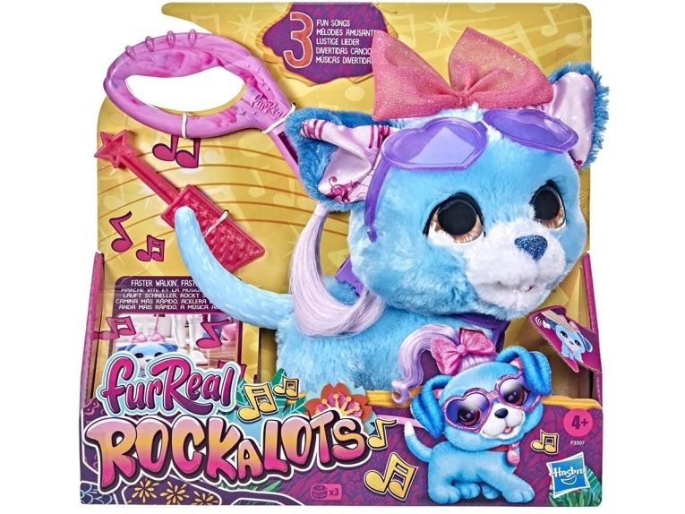 Das interaktive furReal Rockalots Hündchen mit Musik ist ein unwiderstehlich niedliches und absolut cooles Tierchen, das so schnell „rockt“, wie seine kleinen Besitzer! Wird es für einen Spaziergang angeschoben, spielt es 3 tolle Lieder ab, die immer schneller oder langsamer werden, je nachdem, in welchem Tempo das Hündchen geschoben wird. Das rockige Hündchen kommt mit einer gitarrenförmigen Bürste, um das weiche Fell zu kämmen, sowie einer Sonnenbrille in Herzform und einem regenbogenfarbigen Röckchen, das auch als Haargummi verwendet werden kann! Das interaktive Tierchen bringt eine 2-teilige abnehmbare Leine mit, mit der es auf dem Boden Gassi geführt werden kann. Wenn es vorwärts geschoben wird, wackelt der Kopf, es macht glückliche Welpengeräusche und spielt rockige Songs ab. Wer kommt mit auf einen Spaziergang im Haus und tut so, als wäre es eine Bühne? furReal and all related characters are trademarks of Hasbro.