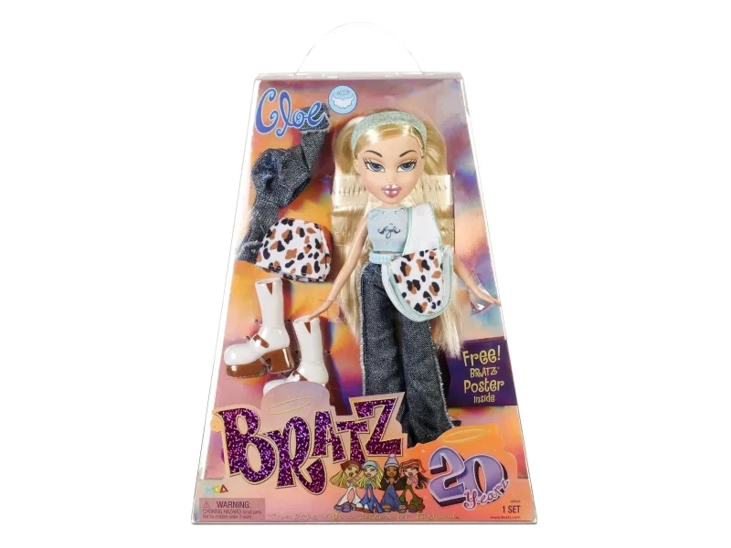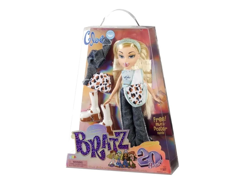 Replica of the original Bratz dolls celebrating 20 years anniversary. The Bratz made their super styling debut in 2001. Now 20 years later, you can collect replicas of the original core 4 girls and Bratz Boyz Cameron. Collectors and new Bratz fans can celebrate 20 years of the Girls with a Passion for Fashion with these iconic looks. From the outfits to the iconic packaging, these dolls are near exact replicas of the dolls that started it all. Collect all 5 of them. From 5 years. Includes: - Bratz doll - near exact replica of original 2001 doll - outfit - jacket or extra top - extra skirt or pants - 2 pairs of shoes - headband or hat - purse or backpack - hair brush - poster - iconic trapezoid package