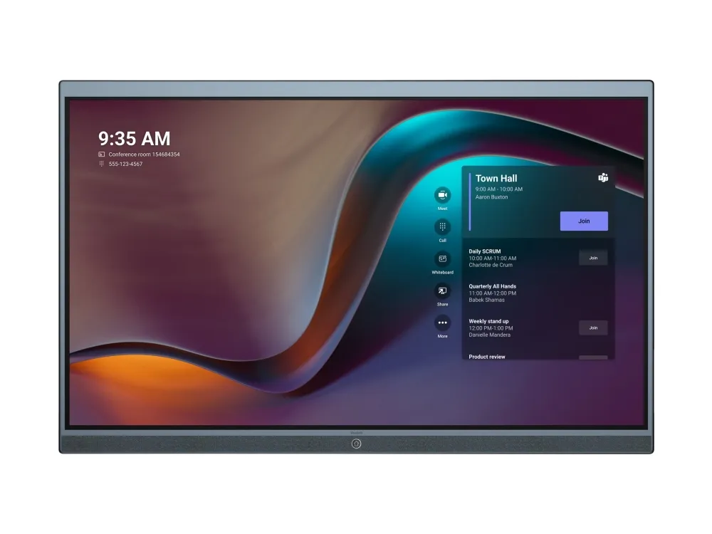 ETV65 and MeetingBoard65 combine to create a dual-screen solution for larger spaces, allowing remote participants to be displayed while collaborating on shared content.