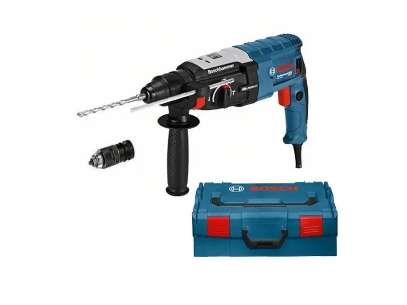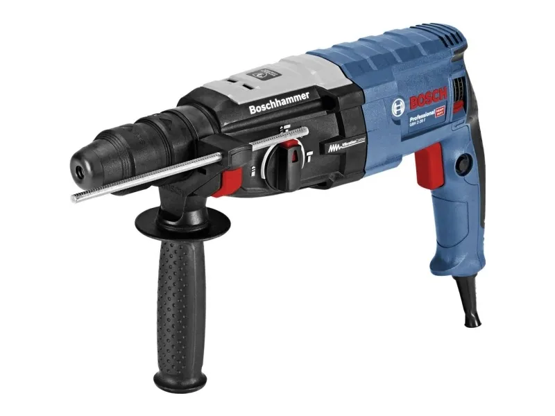 Bosch GBH 2-28 F. Chuck type: SDS Plus, Product colour: Black, Blue. Idle speed (max): 4000 RPM, Drilling diameter in wood (max): 3 cm, Drilling diameter in steel (max): 1.3 cm. Power source: AC, Input power: 880 W, Cable length: 4 m. Weight: 3.1 kg, Depth: 402 mm, Height: 216 mm. Impact energy (max): 3.2 J