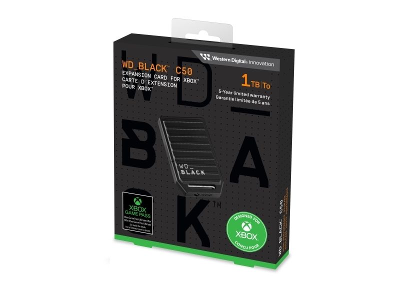 Say hello to more for your Xbox. As game files get larger, the WD BLACK C50 Expansion Card for Xbox is the fast and easy way to give your Xbox Series X|S a big capacity boost and keep more titles installed. Just plug this officially licensed card directly into the console for similar performance as the Xbox internal storage.