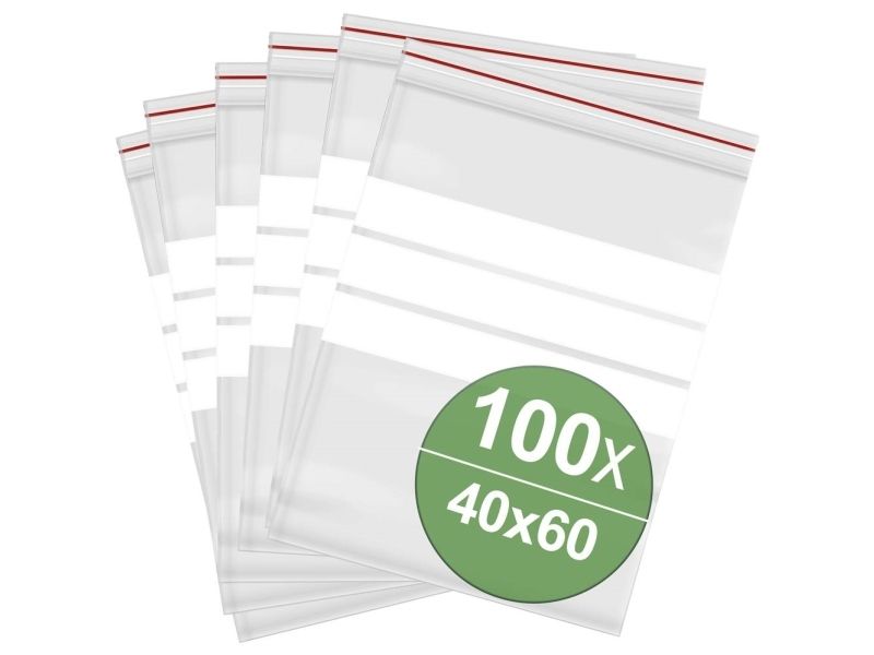 Verschlussbeutel mit Textetiketten (B x H) 40 mm x 60 mm transparentes Polyethylen, 100 Stk