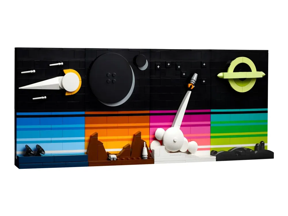 Originelles Design: Baue farbenfrohe Bilder einer Sternwarte mit Kometen und Sternschnuppen, einer Mondbasis und einer Mondfinsternis, eines Spaceshuttles und eines schwarzen Lochs