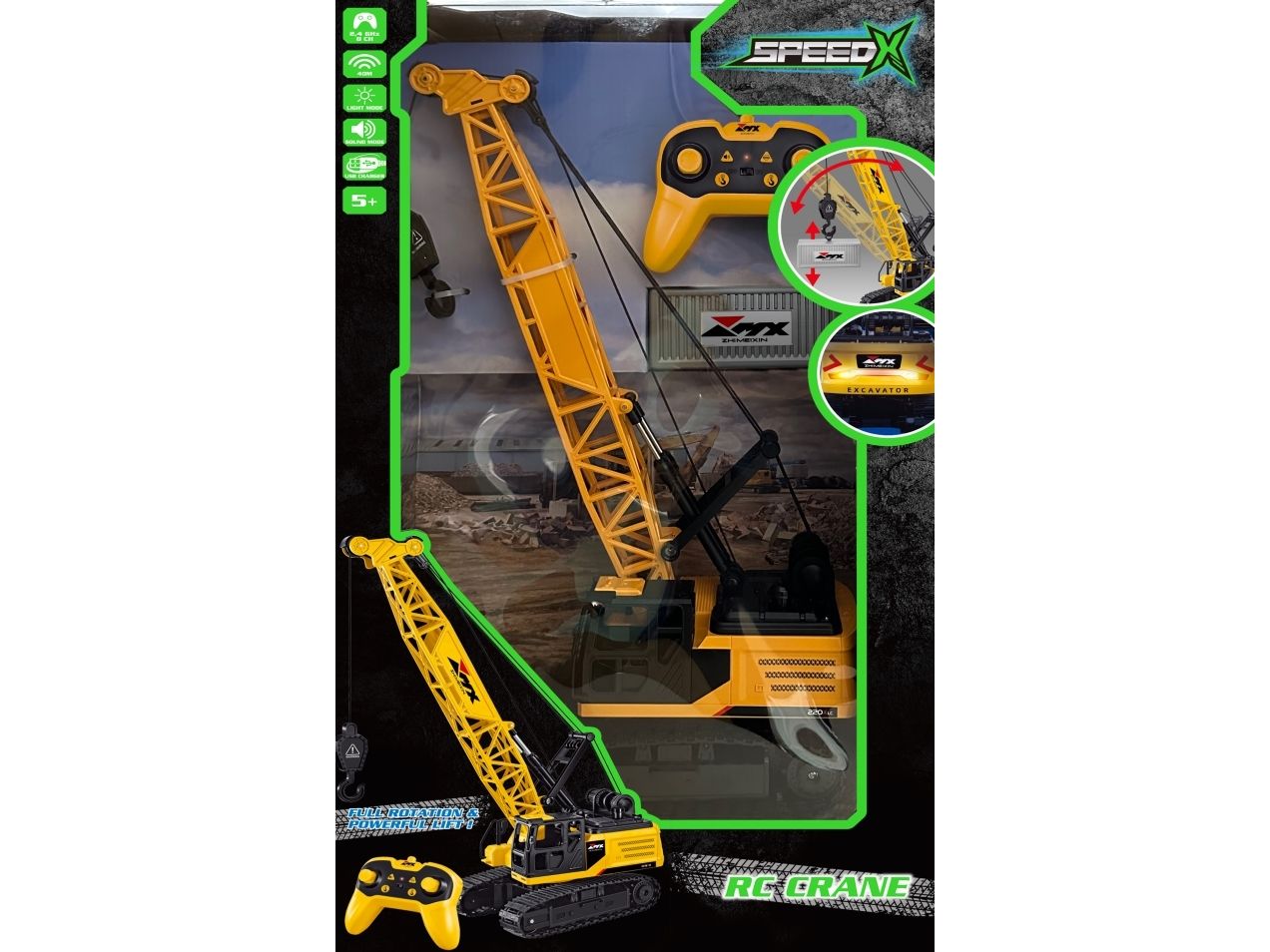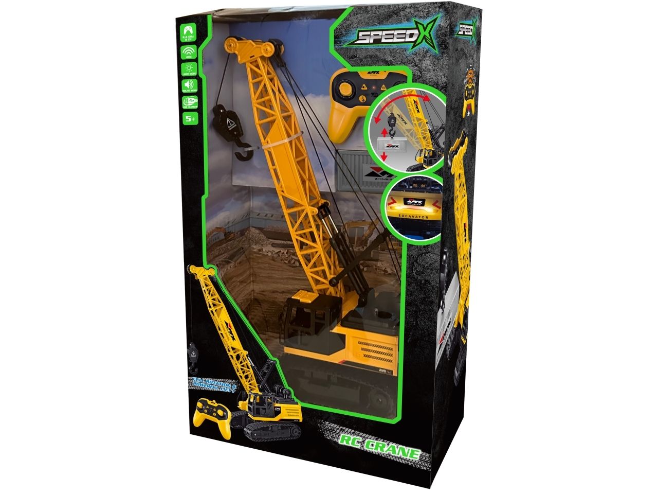 Contents: 1 x PowerX RC Crane 1 x Remote Control 1 x Container 1 x Rechargeable LI-ION battery 1 x USB Cable