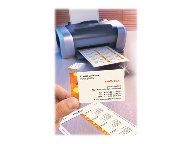 Do you ever need new business cards? You can spend a lot of time trying to find a suitable printing shop or you can print your own business cards yourself in your own office. This solution is particularly suitable for small quantities because it is cheap and flexible. Avery Zweckform top quality business cards with micro-perforation stand out because of their exceptional print quality and extra-fine perforation lines. The individual cards can be detached easily and cleanly. Avery offers you the best possible support for designing and printing with Avery Zweckform Design and Print Online, the business card software.