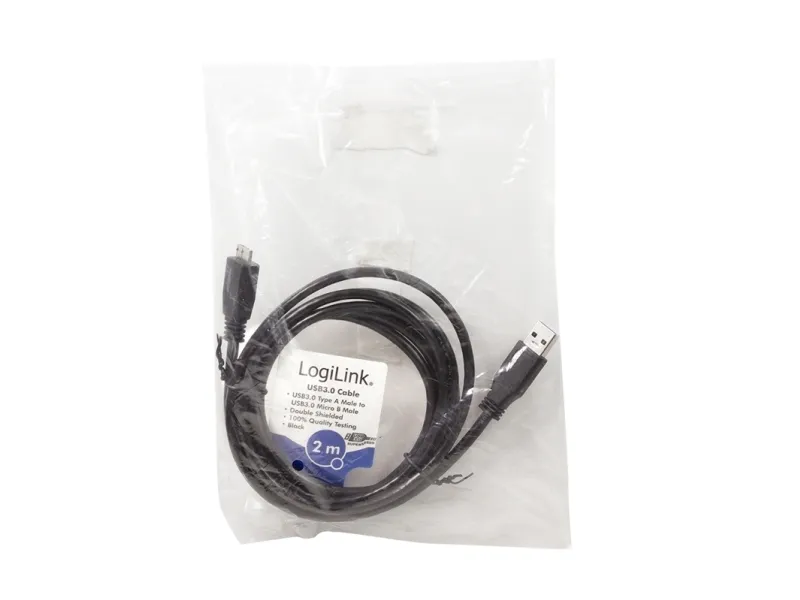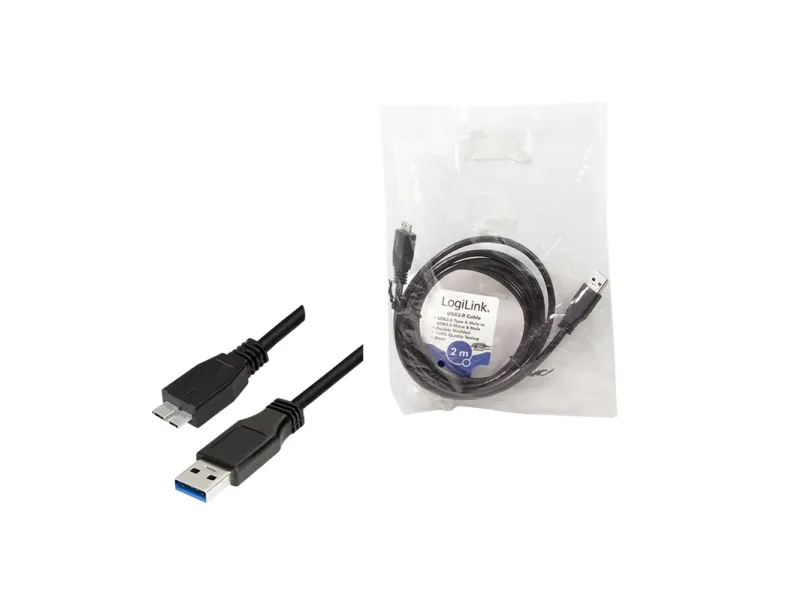 Produktinformationen "Kabel USB 3.0 Anschluss A->B Micro 2x Stecker, 2m" von LogiLink USB 3.0 Anschlusskabel mit einer maximalen Geschwindigkeit von 5 Gbps und einer Stromversorgung von bis zu 900 mA. Es entspricht dem USB 3.0 Standard mit einer Kabelstärke von AWG 28. Das Kabel ist robust, strapazierfähig sowie hochwertig verarbeitet. Durch die Schirmung wird es vor elektromagnetischen Störeinflüssen geschützt.