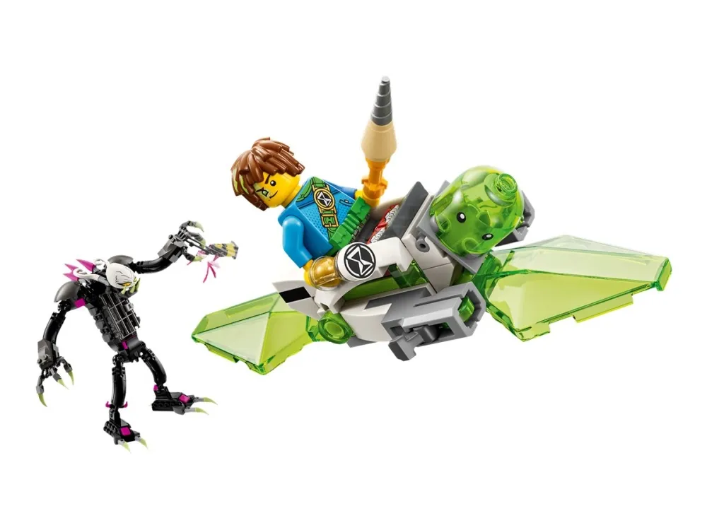 1 Set, 2 Abenteuer Dein Kind hat die Wahl zwischen 2 Modellen, die es bauenkann, um Cooper vor dem Albwärter zu retten. Man kann Z-Blob zu einem Mini-Flugzeug umbauen, um den Bösewicht direkt aufzuhalten. Man kann den Albwärter aber auch auf einem Hoverbike verfolgen und dann genau im richtigen Moment abfangen, um Cooper zu befreien. Lass dein Kind selbst entscheiden, welchen Weg es einschlagen möchte. Das Set bietet auf jeden Fall doppelten Bau- und Spielspaß.