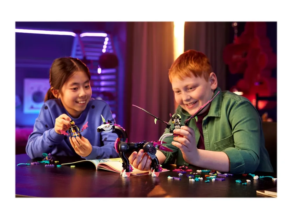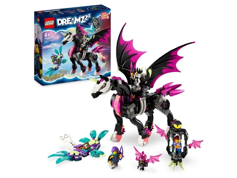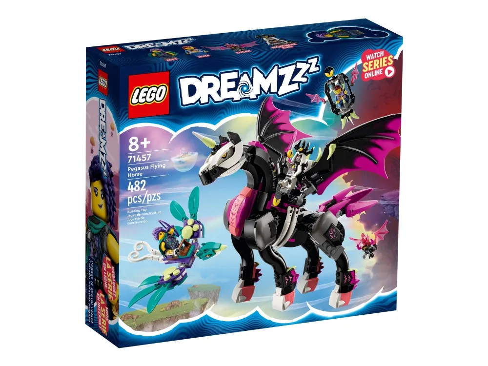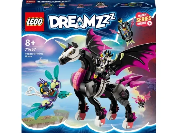 Schick Kinder ab 8 Jahren auf dem LEGO® DREAMZzz™ Pegasus (71457) auf faszinierende Actionabenteuer in der Traumwelt. Das Bau- und Spielset basiert auf der TV-Serie DREAMZzz. Nova wurde von dem Albgnom Susan entführt. Doch Zoey ist den beiden schon auf ihrem Pegasus auf den Fersen, um ihre Freundin Nova zu retten! Die Bauanleitung in Form einer Bildergeschichte lässt dein Kinder in diese faszinierende Spielwelt eintauchen und fantasievoll spielen. Welchen Weg Zoey einschlägt, entscheidet dein Kind ganz allein.