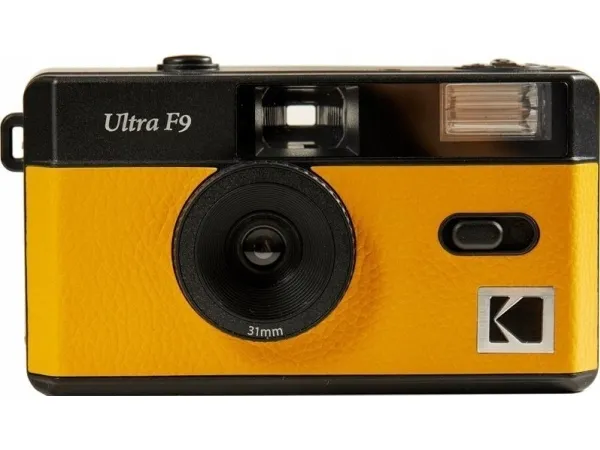 Perfect for travel, the KODAK film camera Ultra F9 has a fixed focus lens, manual film winding and rewinding and a switch to turn flash On/Off.