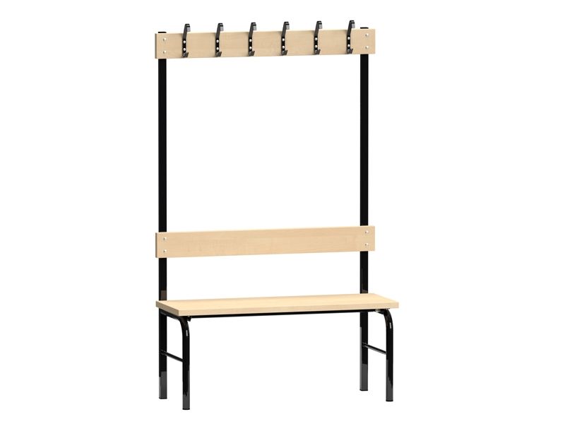 Garderobenständer einseitig schwarz Gestell und Bank aus Kiefer Breite 2000 mm