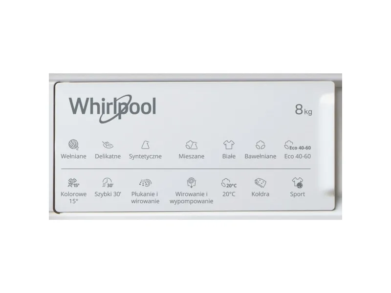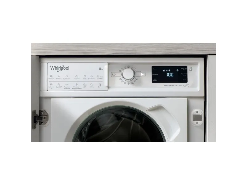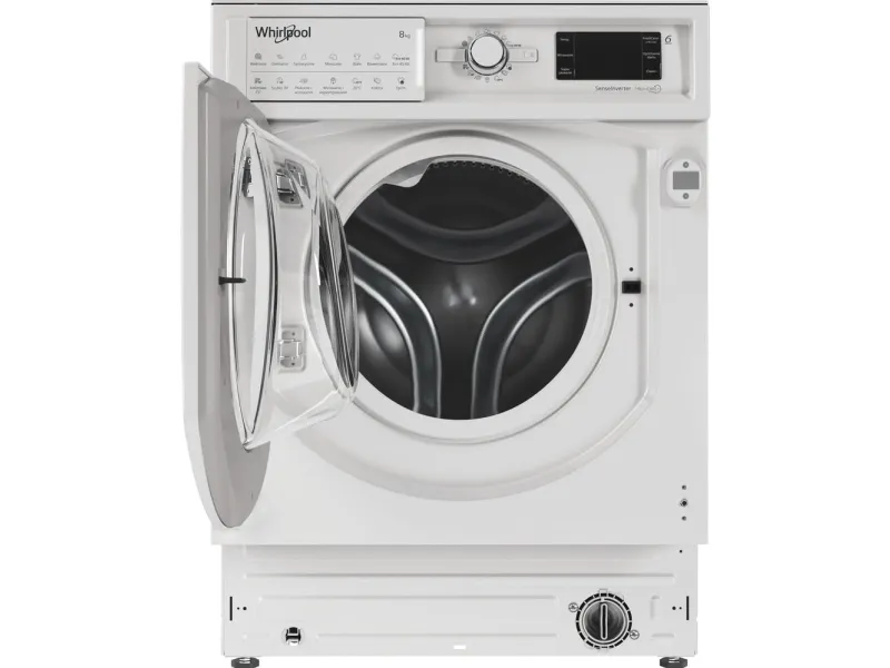 Whirlpool BI WMWG 81485 PL. Loading type: Front-load. Rated capacity: 8 kg, Spin-drying class: B, Noise level (spin): 70 dB, Maximum spin speed: 1351 RPM. Product colour: White. Width: 595 mm, Depth: 545 mm, Height: 815 mm. Energy efficiency class: B