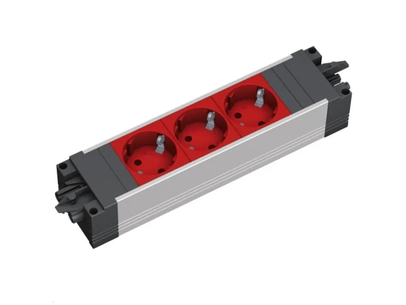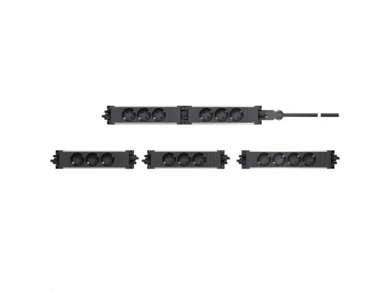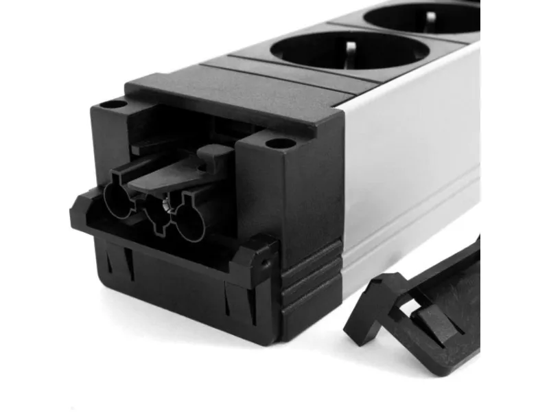 The Bachmann Step Alu triple power strip (906.306) is a power strip with an aluminum housing. It has three safety sockets. The sockets are inclined by 35 degrees, which makes it easier to connect bulky plug-in power supplies. The socket strip has a GST18 plug as the power input and a GST18 socket as the power output. The increased protection against accidental contact minimizes the risk of electric shock. The power strip is suitable for use in offices, workplaces, living rooms, kitchens or any other environment where reliable power distribution is required. Can be mounted on T-slot profiles and stand profiles from different suppliers.Bachmann 906.306. AC outlets quantity: 3 AC outlet(s), AC outlet types: Type F, Nominal input voltage: 250 V. Power plug: GST18i3. Product colour: Black, Grey, Red, Housing material: Aluminium, International Protection (IP) code: IP20. Width: 52 mm, Depth: 230 mm. Package type: Polybag