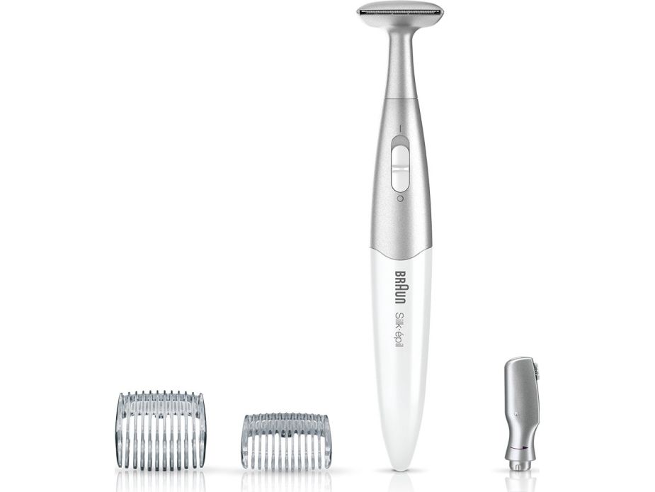 SilkFinish precisely removes and trims any unwanted hair from eyebrows, bikini line, face or any other sensitive areas. Pen-sized battery operated precision hair remover and trimmer - ideal for meticulous detailing all over.