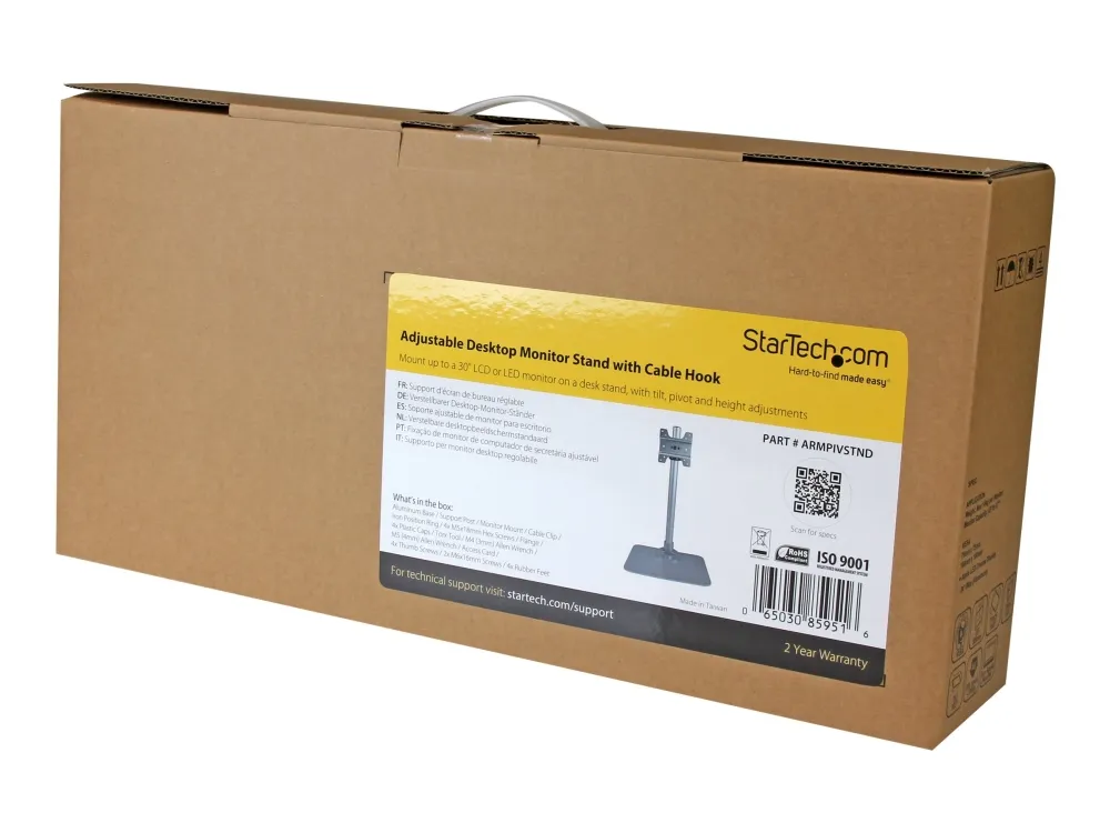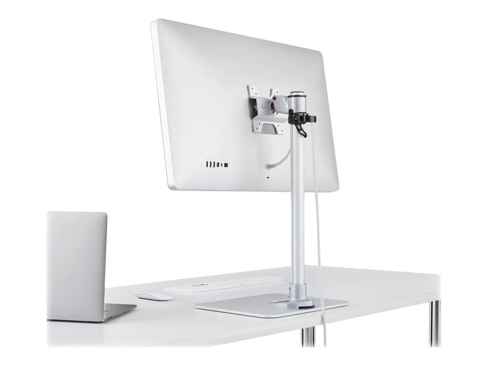The adjustable monitor stand lets you mount a display on the desk stand, with tilt and swivel adjustments for ideal positioning. For viewing longer pages or blocks of code without scrolling, the desk monitor stand also supports landscape-to-portrait display rotation.