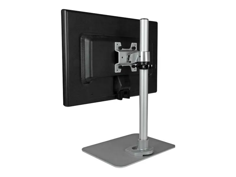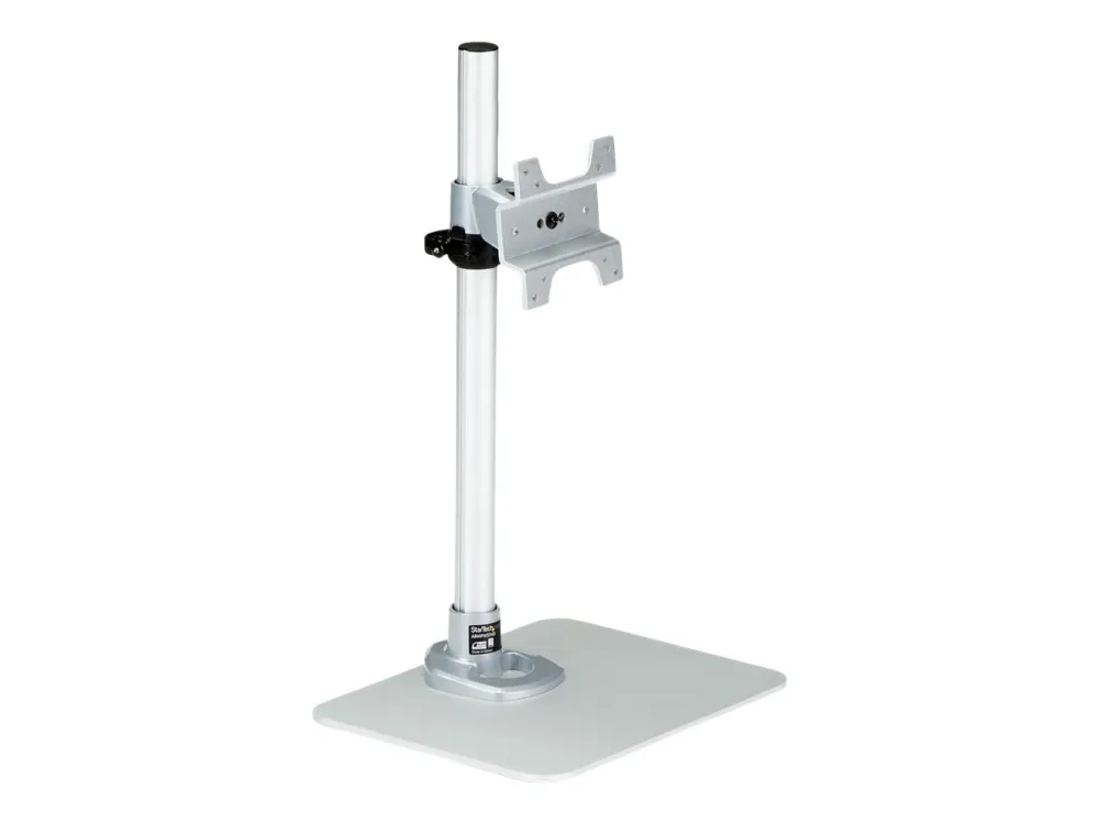 This robust steel single monitor stand, with its sleek silver finish, provides secure support for your display and makes an attractive addition to your workspace. The monitor desk stand allows flexible placement of your computer screen, and is easily adjustable for ideal viewing.