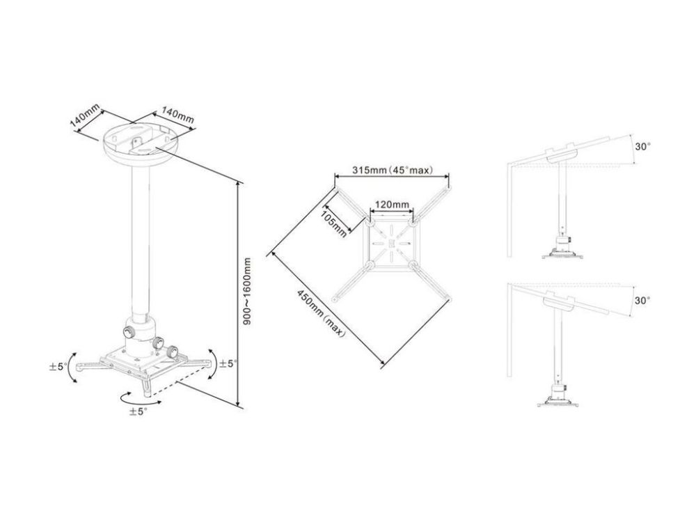 The M Universal Projector Ceiling Mount 900-1600 with Fine tune give you easy placement of your projector in the most discreet setting possible. You can orient and incline according to several axes. The model features cable-masks, height adjustment, and easy fine tune settings adjustments, once the projector is in place. This projector mount has a minimum of surface area to the projector good for not trapping heat close to your projector thus not cutting your projector lamps lifetime.