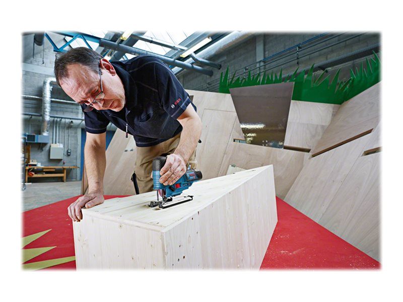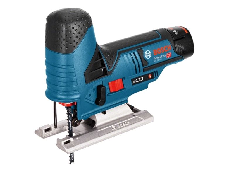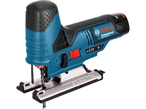 Extrem kompakte und leichte 10,8-Volt-Profi-Akku-Stichsäge - Extrem kompakte, leichte Akku-Stichsäge für perfekte Handhabung und Kurvengängigkeit - Griffposition außerordentlich nah an der Schnittlinie, so dass besonders präzise Schnitte möglich sind - Besonders geringer Griffumfang für komfortables und ermüdungsarmes Arbeiten - Hervorragende Sicht auf die Schnittlinie dank zuschaltbarer, heller LED - Electronic Motor Protection (EMP) schützt den Motor vor Überlastung und sorgt für lange Lebensdauer - Ergonomischer Stabgriff mit großflächigen Softgrip-Auflagen für komfortables Arbeiten - Hohe Leistung: Schneller Sägefortschritt und lange Akkulaufzeit mit 2,0 Ah Akku - Optimierte Bauform für komfortables Sägen von unten - Robuste Aluminiumfußplatte mit Kunststoffsohle für bessere Gleiteigenschaften und zum Schutz empfindlicher Oberflächen - Bosch Electronic Cell Protection (ECP): Schützt den Akku vor Überlastung, Überhitzung und Tiefentladung - 3-Stufen-Pendelung für ausrissfreie Schnitte
