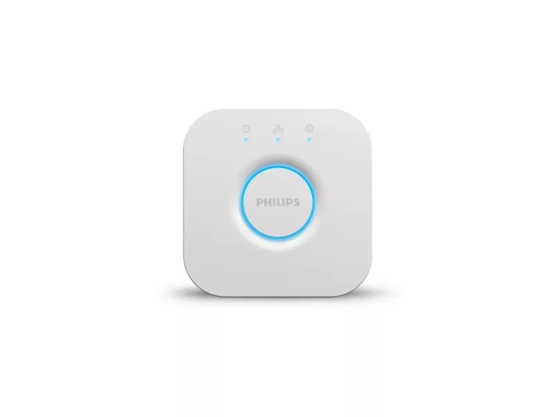 Kabellose Beleuchtung Die Hue Bridge, das „Gehirn“ des intelligenten Philips Hue-Beleuchtungssystems, ermöglicht das Hinzufügen und die Steuerung von bis zu 50 Leuchten und Zubehörteilen. Stecke diese einfach ein, und steuere mit der Hue-App Routinen, Timer, eigene Lichtszenarien und mehr.