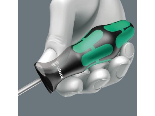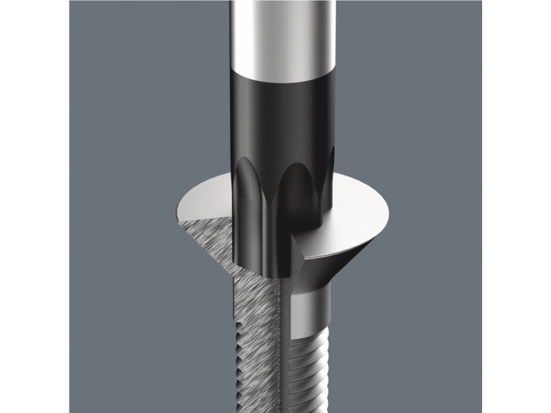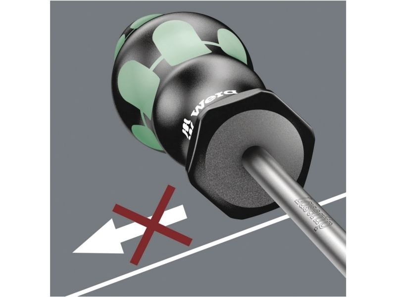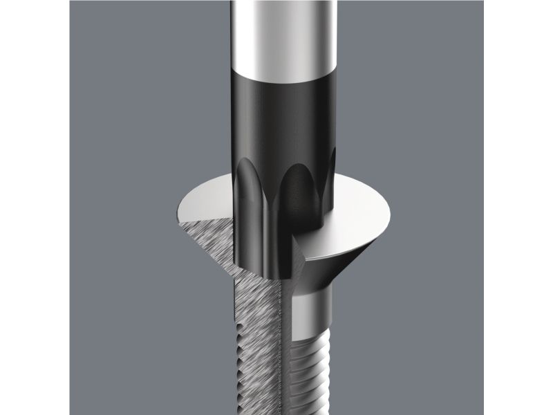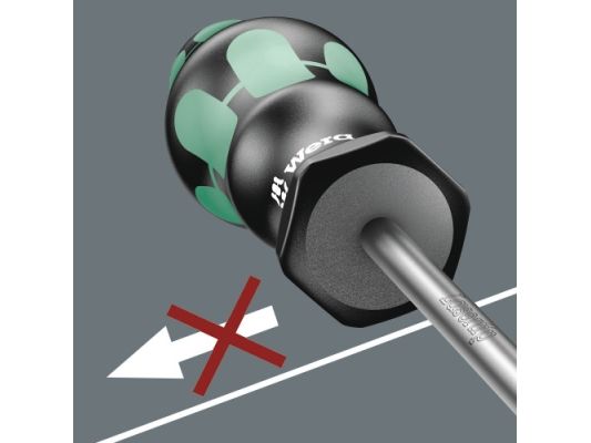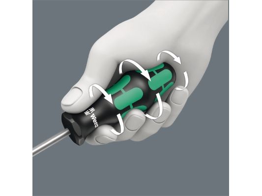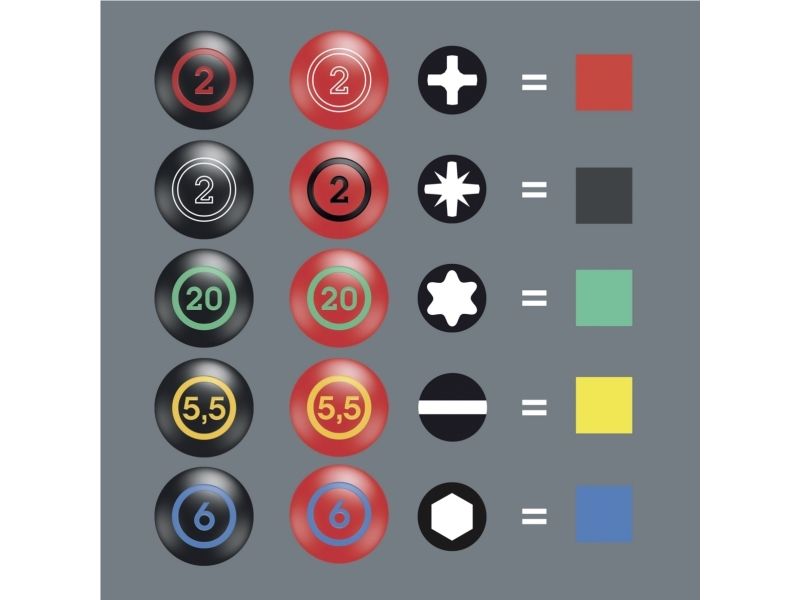 Die Kennzeichnung des Griffs mit Schraubensymbol und -größe erleichtert das Auffinden des Schraubendrehers in der Werkzeugtasche und am Arbeitsplatz.