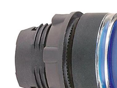 Blue flush illuminated pushbutton head Ø22 spring return for integral LED