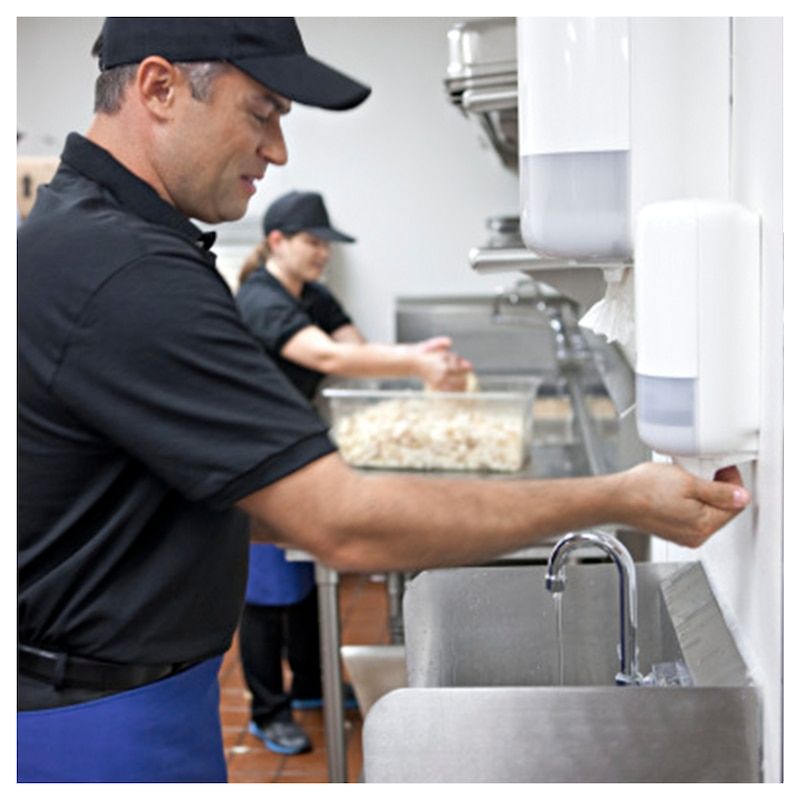 En alsidig sæbe til dine gæster med en frisk duft, som passer til alle hudtyper. Tork Mild Sæbe med fugtende og genopbyggende ingredienser, dokumenteret mild mod huden, til skånsom håndvask. Egnet til Tork Dispenser Flydende sæbe og Hånddesinfektion, som er lette at betjene og sikrer alle brugere god håndhygiejne.