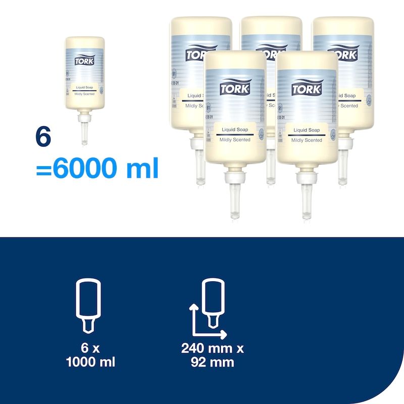 Soap Tork Flüssigseife mit mildem Duft S1, 1000 ml - (6 Stück/Karton)