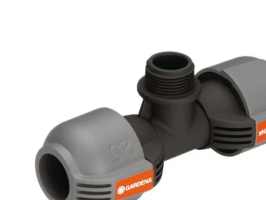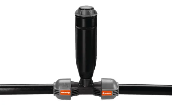 Das GARDENA T-Stück 25 mm x 3/4“-Außengewinde dient – im Rahmen des GARDENA Sprinklersystems – zum Anschluss des Turbinen-Versenkregners T 380 (Art.-Nr. 8205-29) und des Versenk-Viereckregners OS 140 (Art.-Nr. 8220) im Rohrverlauf. Durch die patentierte „Quick & Easy“-Schnellverbindungstechnik erfolgt die Rohrmontage oder -demontage werkzeuglos durch einfaches Drehen der Verschraubung um 140°. Für den wasserdichten, sicheren Betrieb ist die Gewindeverbindung des T-Stücks selbstdichtend.