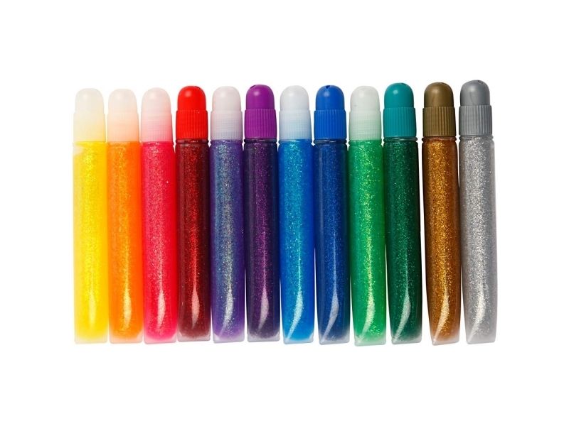 Glitzerleim, 12 Tuben à 10 ml in verschiedenen Farben