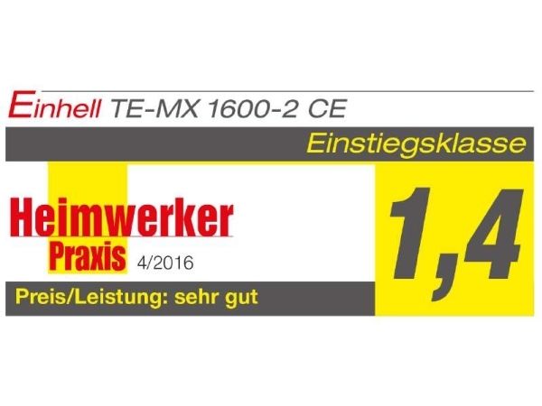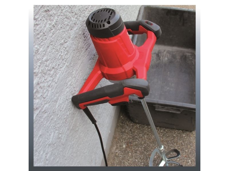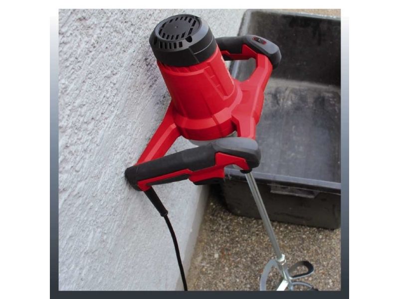 When mixing fluid and powdery construction materials, experts swear by the high-quality powerful paint-/mortar mixer with constant electronics TE-MX 1600-2 CE. Its two-speed gear unit in a robust and durable metal aluminium housing converts the power of the 1,600 W motor either into a high torque or into high speed so that the required speed of mixing can be adjusted optimally to the consistency of the mixed material. Due to its big ergonomic handlebar, the mortar mixer always lays in the hand perfectly, and the 3 m long robust rubber cable offers a sufficient radius to work at any time. The stirrer starts smoothly by means of the soft start feature, and inbuilt dynamic speed control allows the precise adjustment of the speed without a speed reduction on-load even during operation. For comfortable continuous operation, the device has a lockable operation switch and a stand mount at the gear neck to work with already existing stirrer stands. All common stirring tools with M14 thread can be operated at the robust stirrer mount. Additionally, a mortar stirrer with Ø 133 mm is included in the scope of delivery.