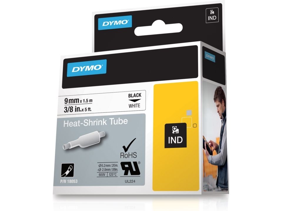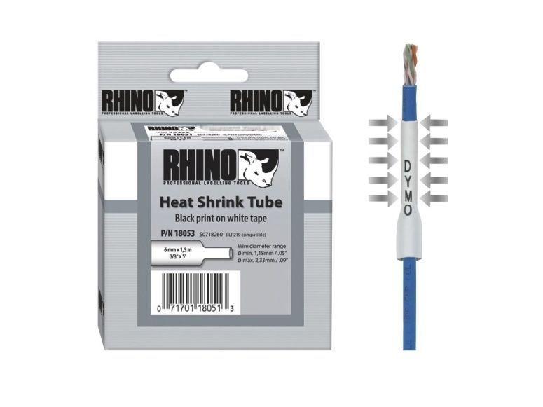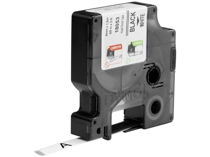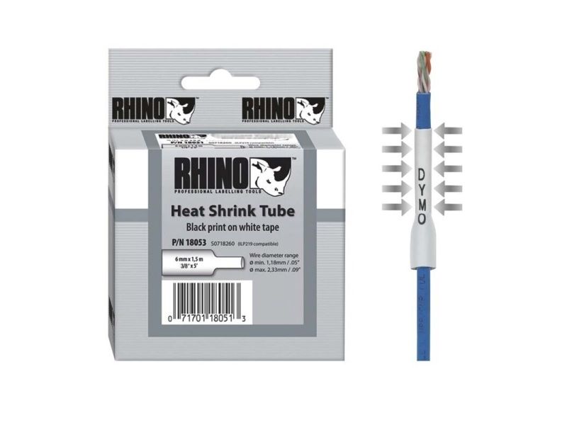 DYMO Rhino Industrie Schrumpfschlauch-Kabeletiketten | 9 mm1,5 m | Schwarz auf weiß | für Rhino Beschriftungsgerät, D1, Belgien, 1,5 m, 1 Stück(e), 34 mm, 85 mm