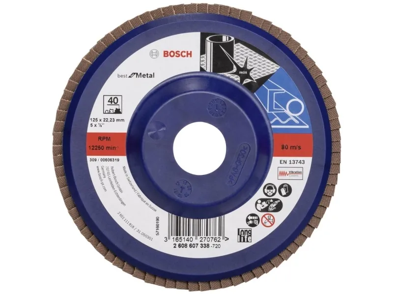 X571 produktnr. For metal, fremragende levetid ved skrubning af svejsesømme og slibning af store overflader. Lang levetidX571 produktnr. For metal, fremragende levetid ved skrubning af svejsesømme og slibning af store overfladerSlibeslibeslibesættet af zirkoniumoxidforstærket halbedekorn af høj kvalitet er robust og slidfast. Fremragende levetid - X571 Best for metal har en fremragende levetid ved skrubning af svejsesømme og slibning af grove overflader. Slibeslibevifte af slidkorund med høj kvalitet, er robust og slidfast. Produktet er beregnet til metal. X571 Best for metal er kompatibel med vinkelslibere. Slibekrystalliserer på X-vævet fuld harpiksbeklædning sørger for slidstyrke og lang levetid under hård anvendelse. Støtteplade både vinklet og lige og både af glasfiber samt i plast med 22,23 mm borediameter til standard-vinkelslibere med spændemøtrik.