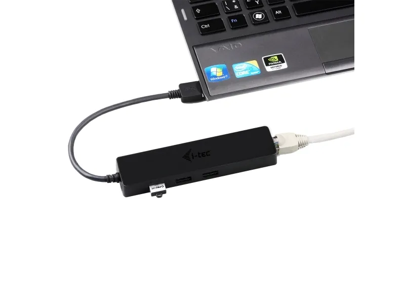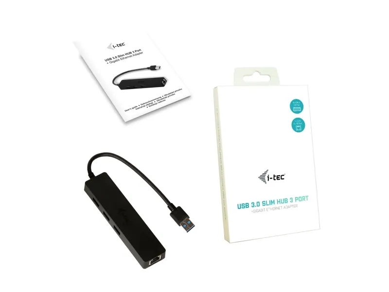 Eine Kombination von passivem USB 3.0 Hub mit Gigabit Ethernet Adapter für einen einfachen und schnellen Anschluß Ihrer USB-Geräte an ein Notebook, Tablet oder einen PC mit nur einem USB-Kabel und für eine Verbindung mit einem Hochgeschwindigkeitsnetzwerk und Internet über Gigabit Ethernet.