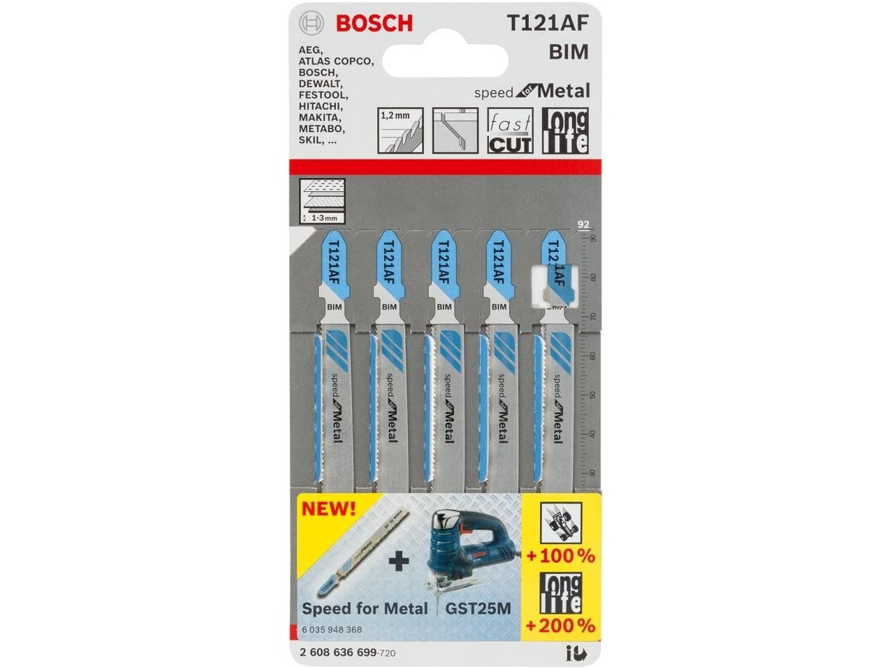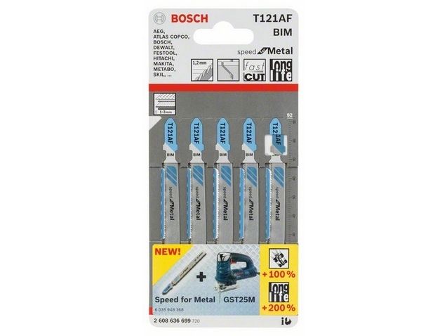 Bosch Stichsägeblatt T121AF 92 mm Metall, 5 Stk (2608636699)