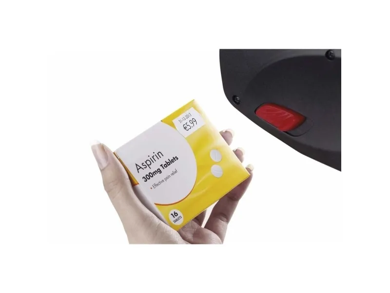 Etikettengröße 26 x 16 mm. Die Preisetiketten haben die traditionelle Form eines Preisschildes und sind mit einer Sicherheitsperforation versehen, um Manipulationen am Etikett zu verhindern. Die obere Zeile des Preisschildes bietet Platz für maximal 8 alphanumerische Zeichen und die untere Zeile für maximal 10 alphanumerische Zeichen.