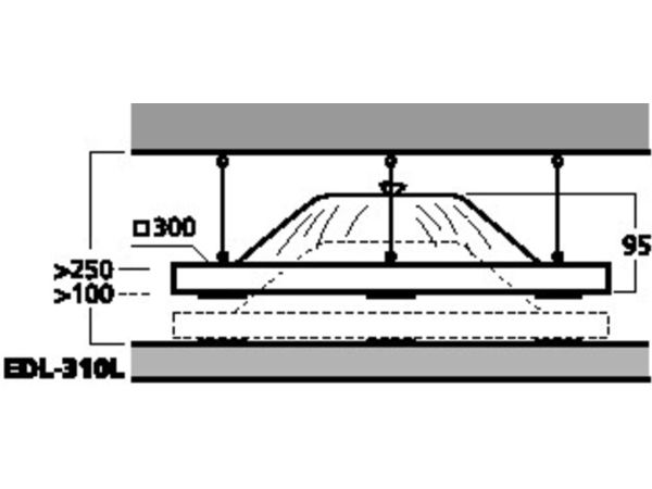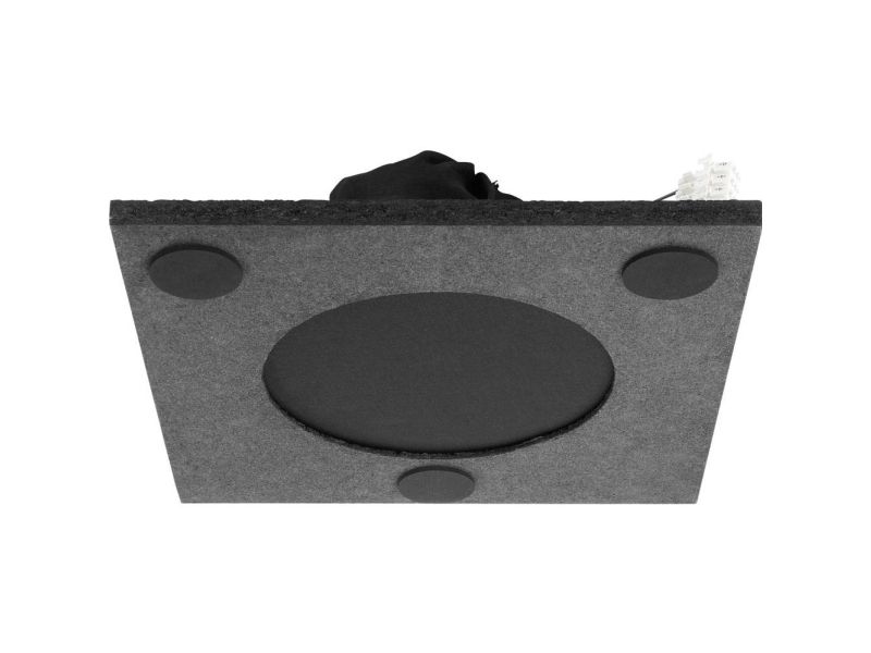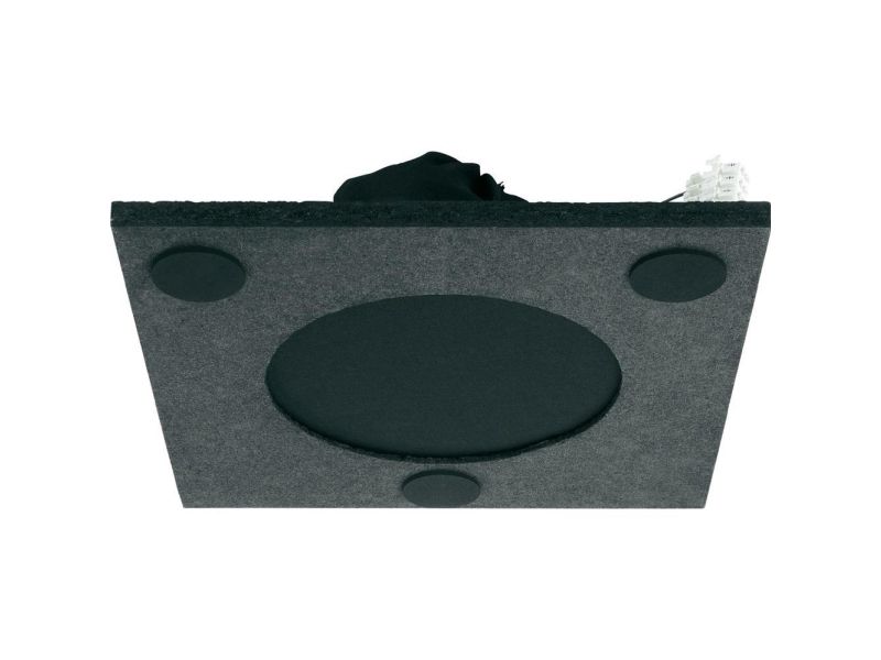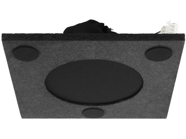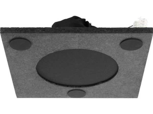 ELA-loftshøjtalerEnkel installation med direkte belægning på eller via ophæng over loftet (for at undgå klapstøj ved letvægt-lofter). Meget godt lydbillede med fremragende lydfordeling i rummet i alle lydåbne lofter. I de fleste lydtættere lofter kan typiske diskantdæmpningsninger i vid udstrækning korrigeres med enkle diskantreguleringer på forstærkeren, og der kan også her realiseres baggrunds-lydanlæg uden noget udsnit og uden synlige højttalere · Mål 300 mmx300 mm · Nødvendig indvendig højde over loftet · Ved direkte tilslutning:> 10 cm, ved ophæng over loftet:> 25 cm · Udstyr til lydvæggen med 3 moosgummi-pads til oplægning eller 3 forbhuller til ophængning.