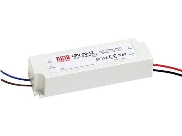 MEAN WELL LPV-20-12, 20 W, 90 - 264 V, 20 W, 47 - 63 Hz, 1,67 A, Weiß
