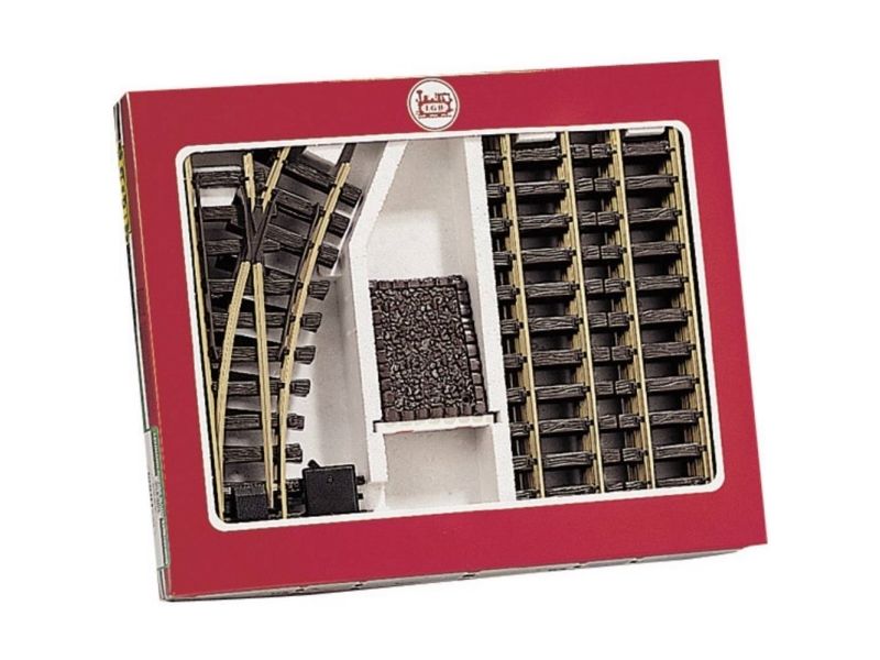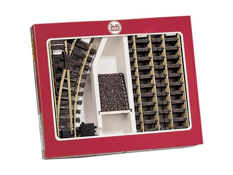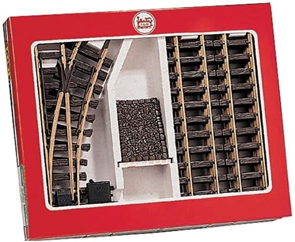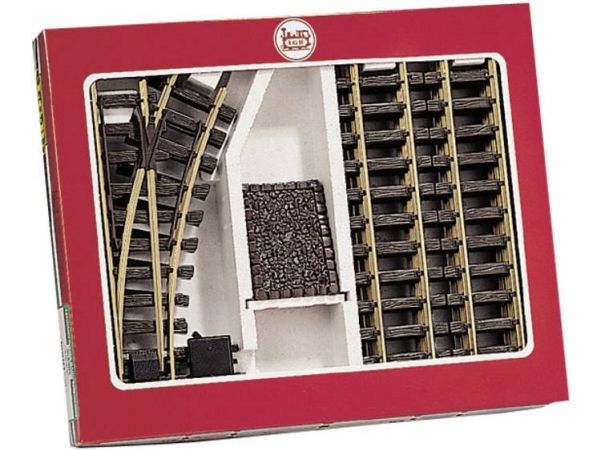 You can enlarge your LGB starter set circle into an oval with a siding for switching operations and train storage. The sturdy storage box includes: 1 - 12000 manual right-hand switch, 6 - 10000 straight track sections, 1 - 11000 curved track section, 1 - track bumper.
