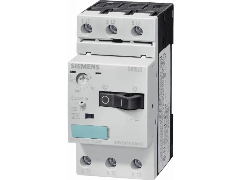 Siemens 3RV1011-0JA10 Leitungsschutzschalter 1 St. 3 x Leitungsschutzschalter Einstellbereich (Strom): 0,7 - 1 A Schaltspannung (max.): 690 V/AC (B x H x T) 45 x 90 x 81 mm