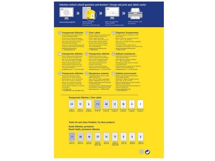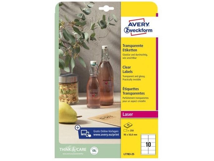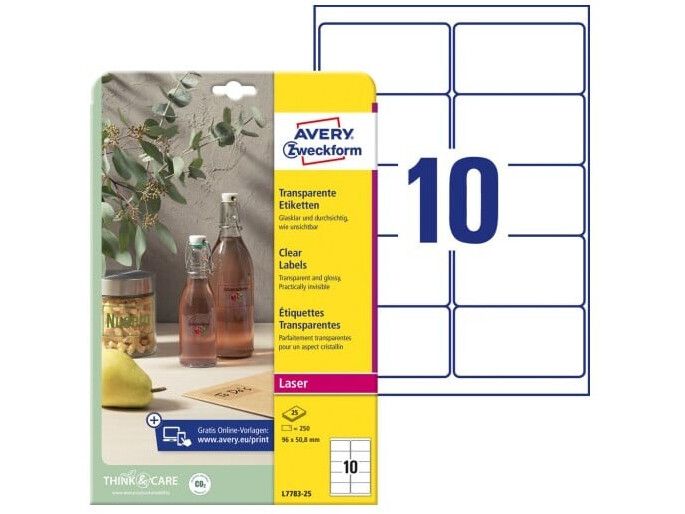 Har du et produkt du skal ud og sælge, så vil du gerne have at det skal se professionelt ud på hylderne. Med Avery's L7783-25 gennemsigtige etiketter med 10 etiketter/ark og 250 etiketter/pakke er det nemt og enkelt at få det udseende du ønsker til dine produktetiketter.