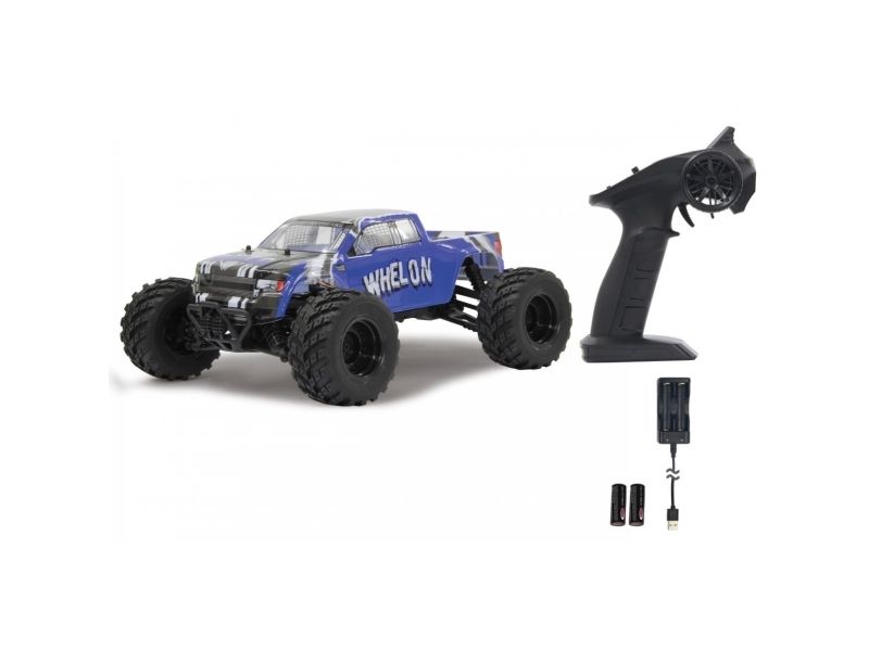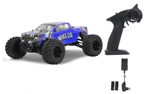 Dieses 1:12 Fahrzeug ist ganz neu im Programm von Jamara. und ist mit seinen fast 35cm Länge ein echtes Spaßgerät. Dreck Sand und richtige Wasserpfützen sind für die Radachsen aus Stahl und den High-Grip-Reifen kein Problem. Die Elektronik ist extrem spritzwassergeschützt. Diese einmalige Konstruktion macht den Whelon zu echten Outdoor Spezialisten. Alle Reifen sind kugelgelagert, voll gefedert mit einstellbarem Dämpferwinkel und verfügen über einen großen Federweg. Für einen kraftvollen und durchzugsstarken 4WD Antrieb sorgt der 500er Motor und die LiIon-Akkus. Komplett mit einer 2,4GHz Pistolenfunkfernsteuerung ist alles im Lieferumfang enthalten was echte Carfans brauchen.
