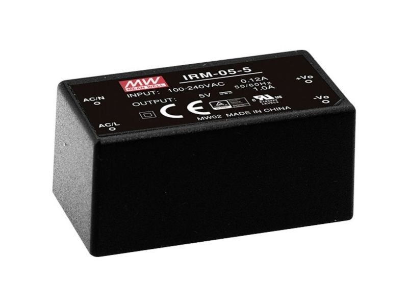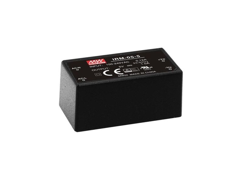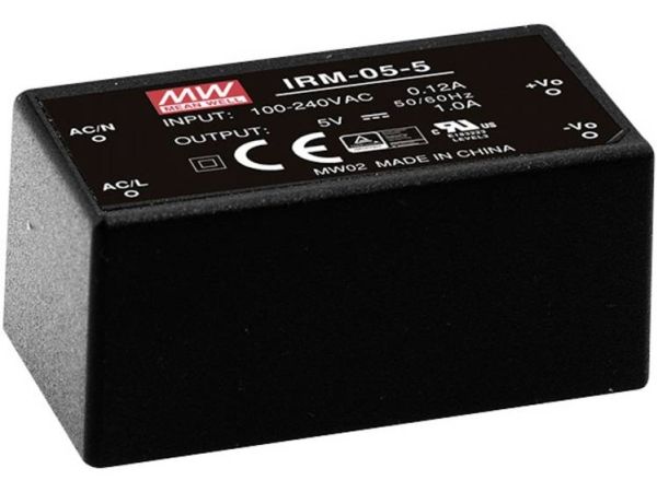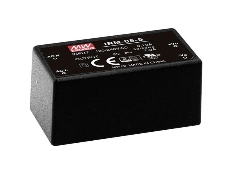 MEAN WELL IRM-05-5, 5 W, 85 - 264 V, ITE EN/UL/IEC 60950, Schwarz, 25,4 mm, 45,7 mm